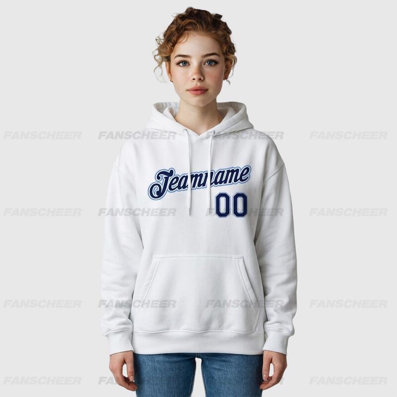 The Fanscheer custom pullover sweatshirt hoodie blends comfort with style, a masterpiece crafted with meticulous attention to detail. Slip into this custom hoodie featuring embroidered numbers and get ready to unwind while showcasing your unique flair.