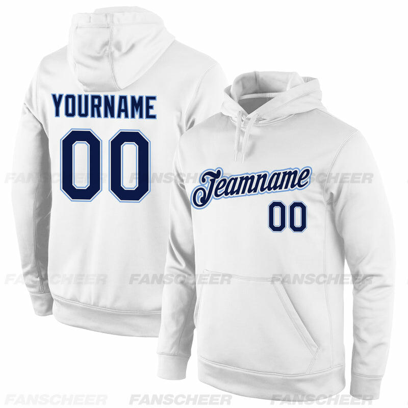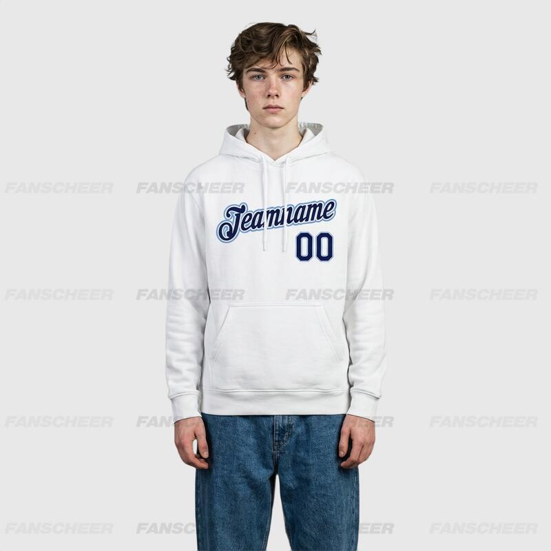 Custom Stitched White Sports Pullover Sweatshirt Hoodie Cozy Soft Ideal for Sports Personalized Team Number