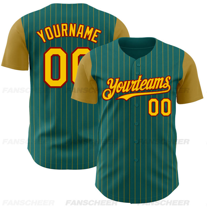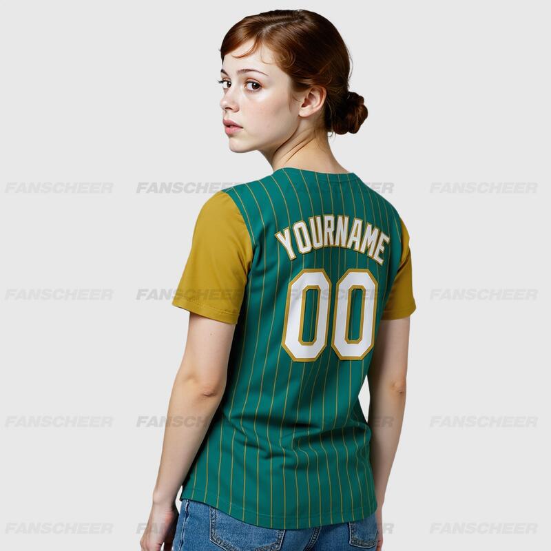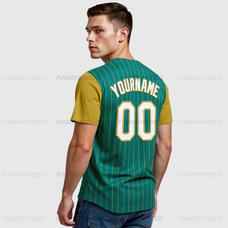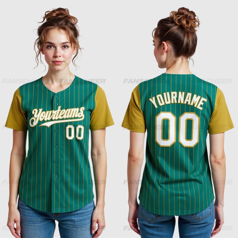 Custom Teal Olive Two Tone Pinstripe Baseball Jersey Personalized Logo and Number Ideal for Baseball Games Fan Gatherings and School Events