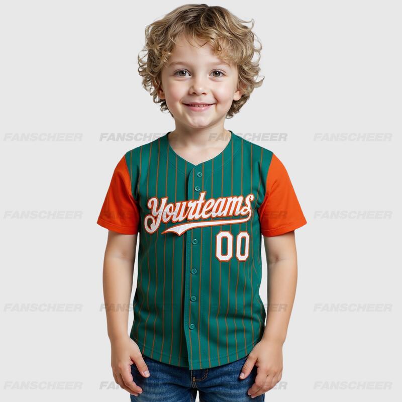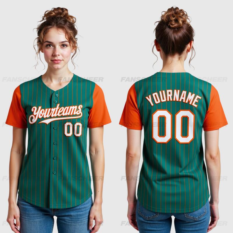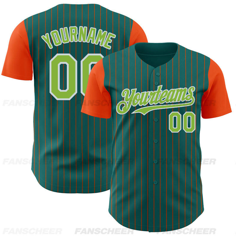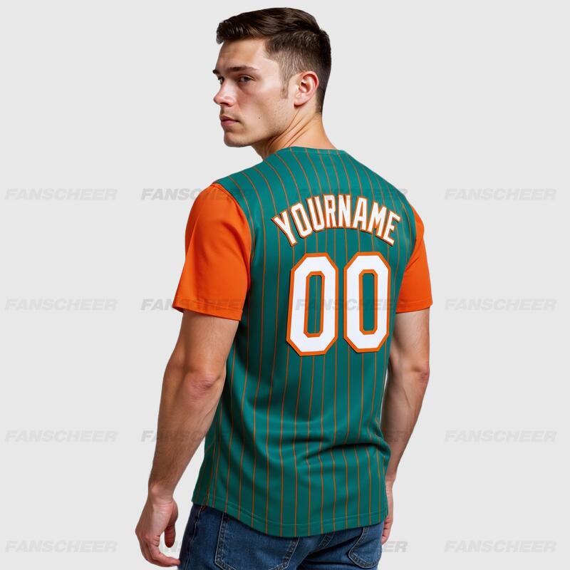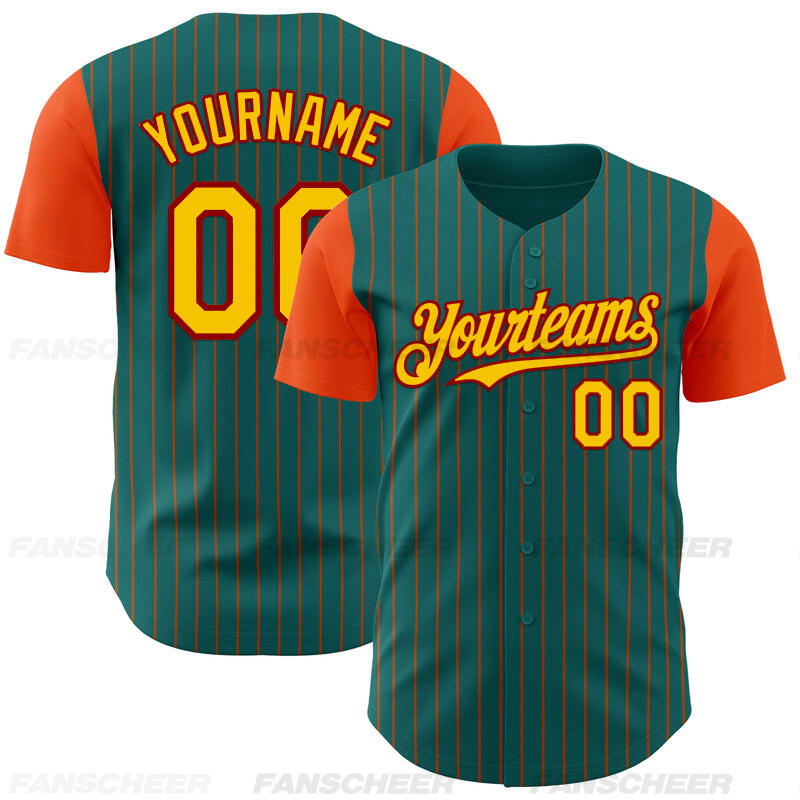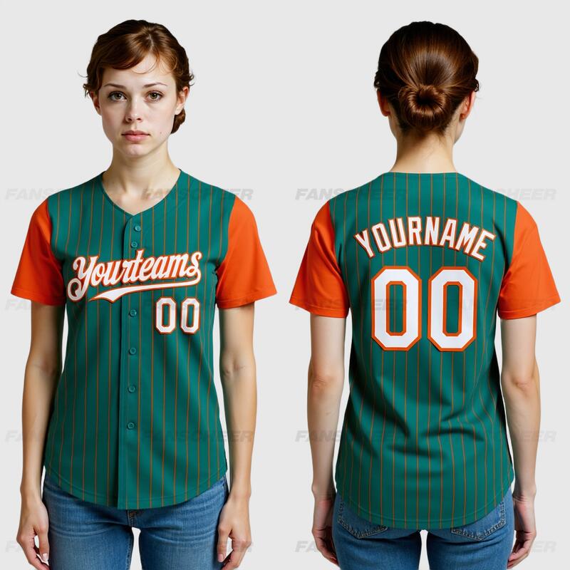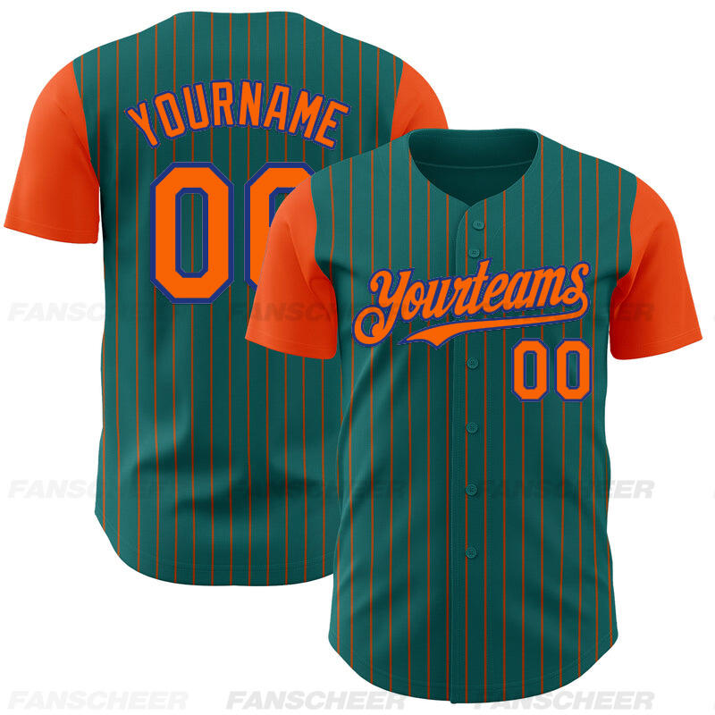 Custom Teal Orange Two Tone Pinstripe Baseball Jersey Personalized Logo and Number Ideal for Baseball Games Fan Gatherings and School Events