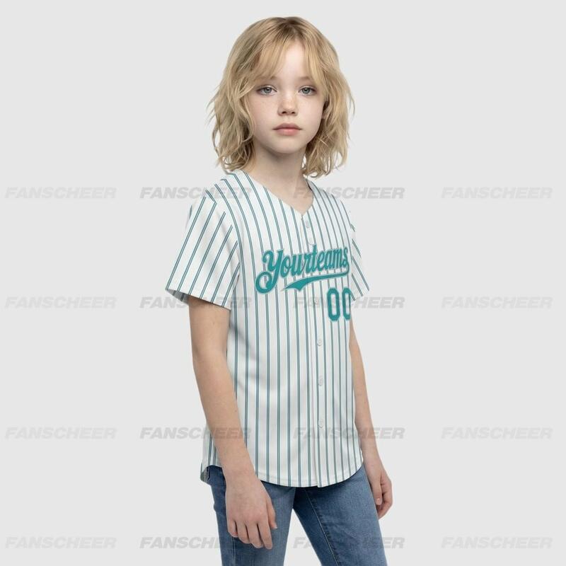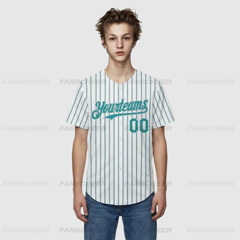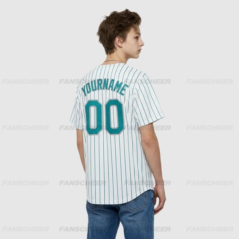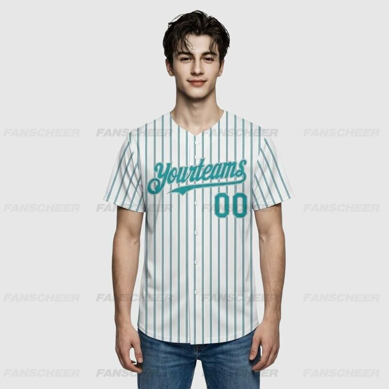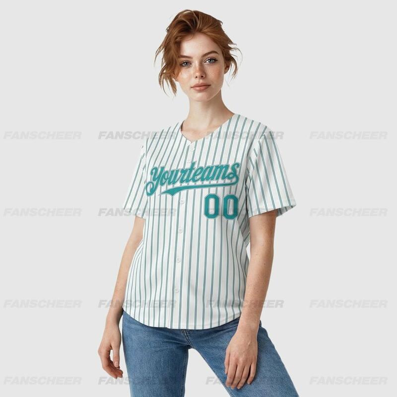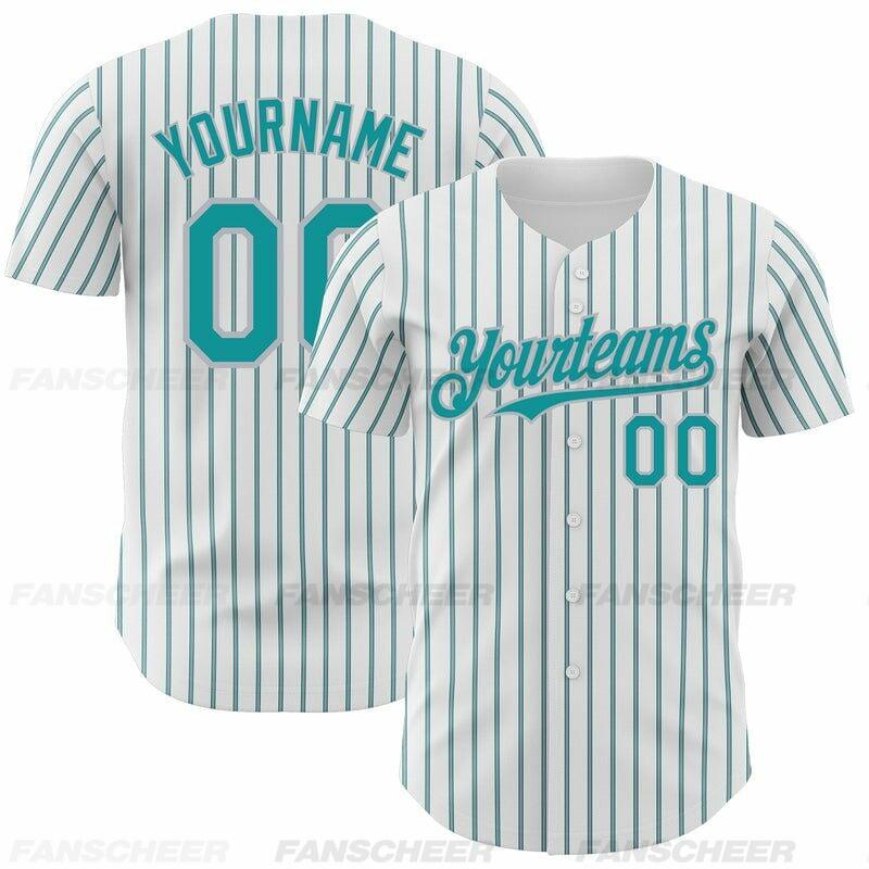 Custom Teal Pinstripe Baseball Jersey – Personalized & Bulk Orders