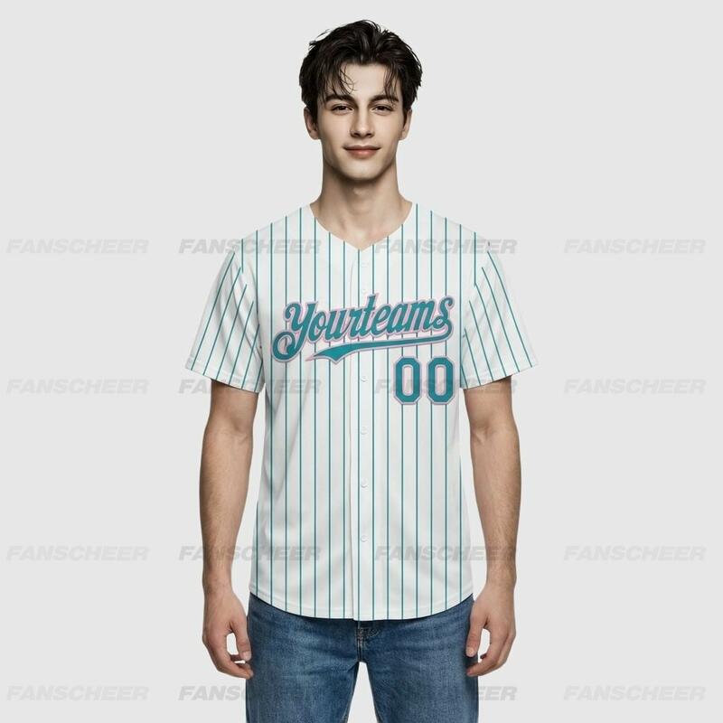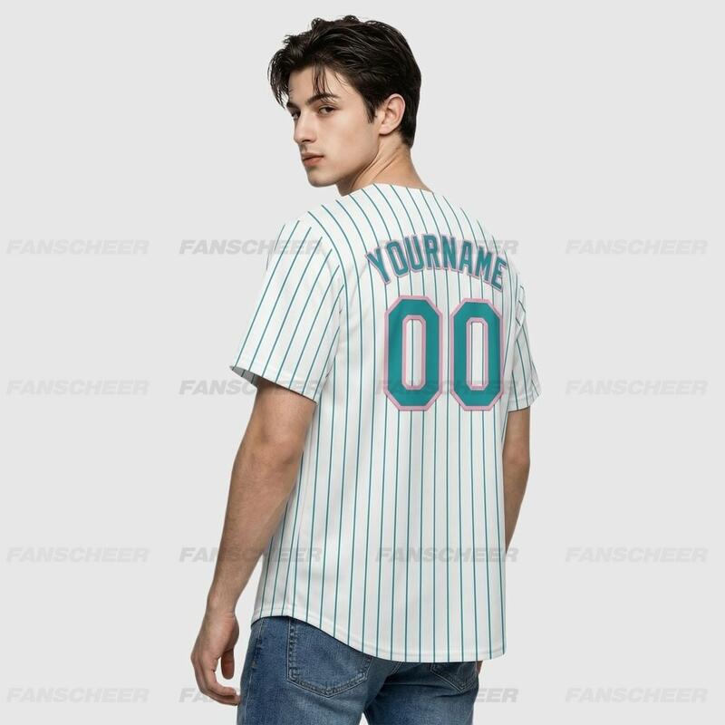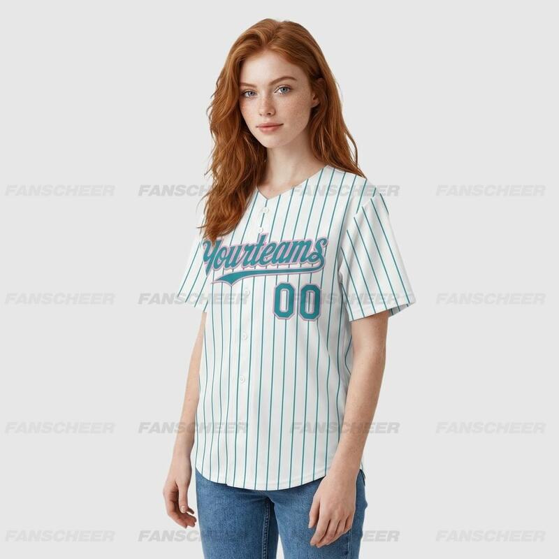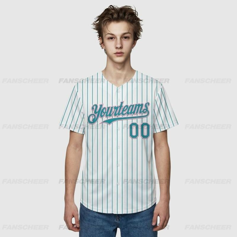 Custom Teal Pinstripe Baseball Jersey – Personalized Design & Bulk Orders