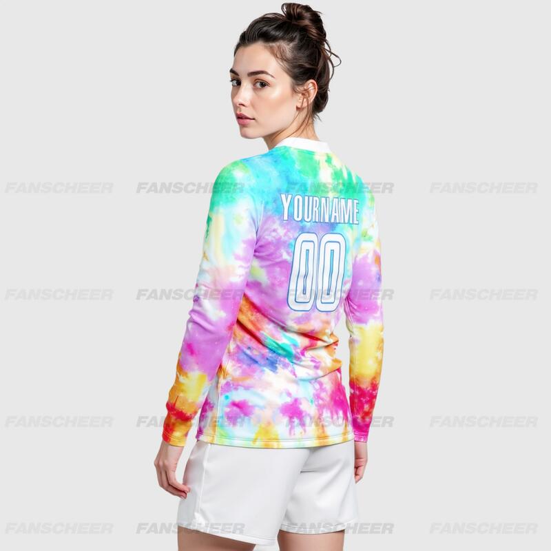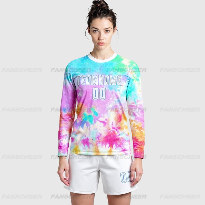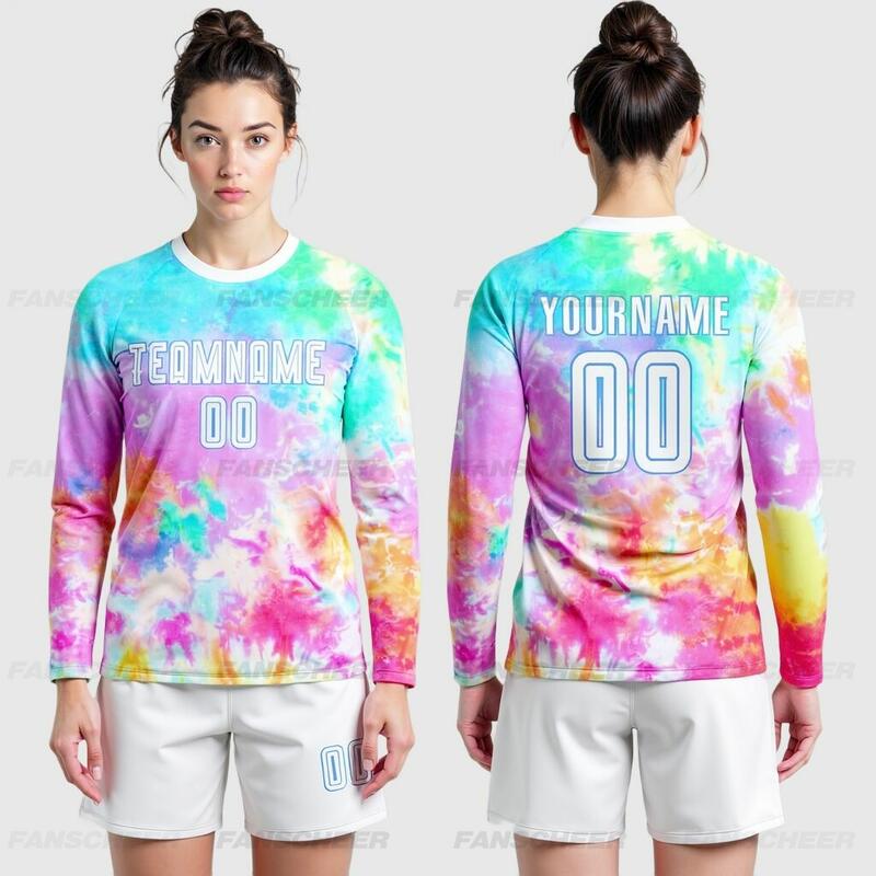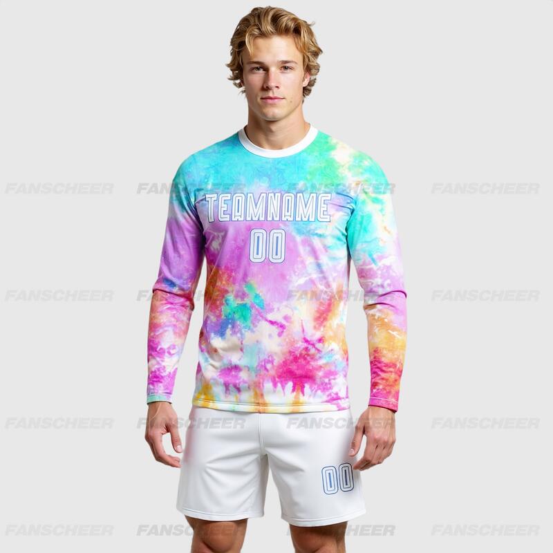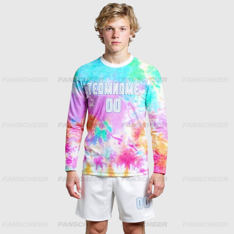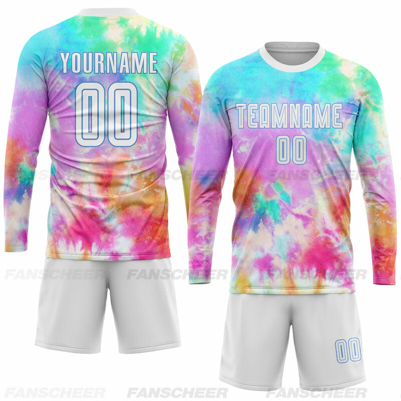 Custom Tie Dye Soccer Uniform Jersey White-Light Blue Sublimation Long Sleeve