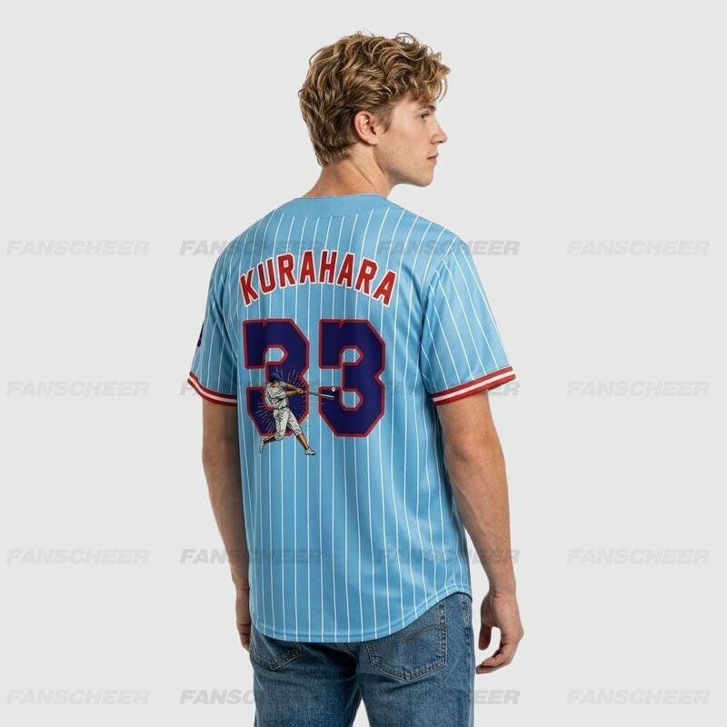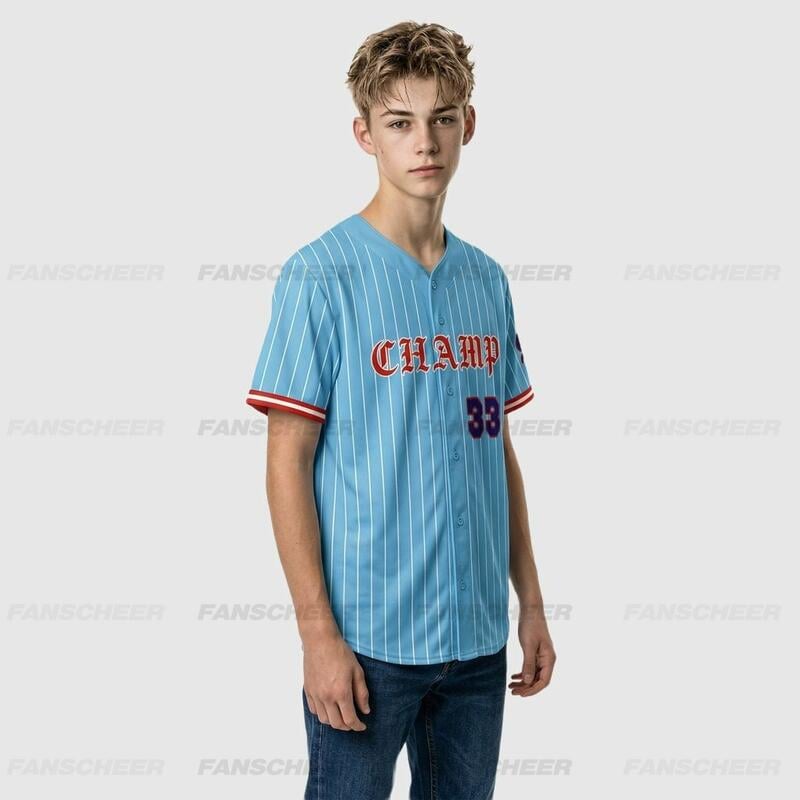 Custom Tokyo Inspired Sky Blue Pinstrip Baseball Jersey – Personalized Name & Number