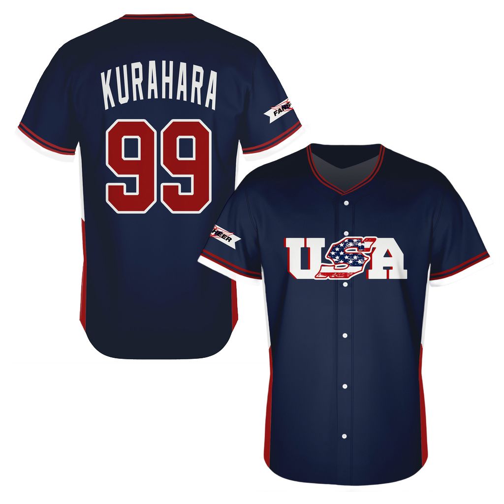 Custom USA Flag Navy Red Baseball Jersey-Personalized Team Name and Number