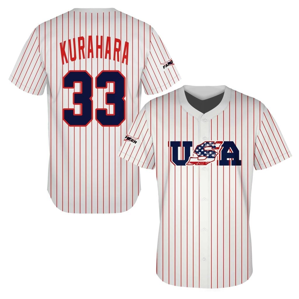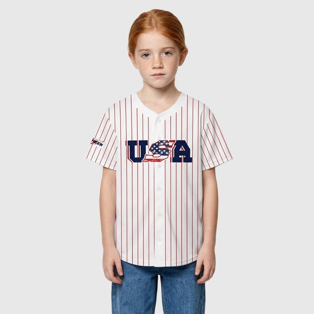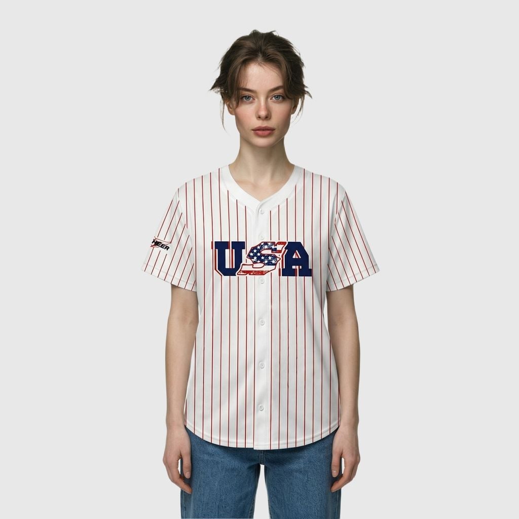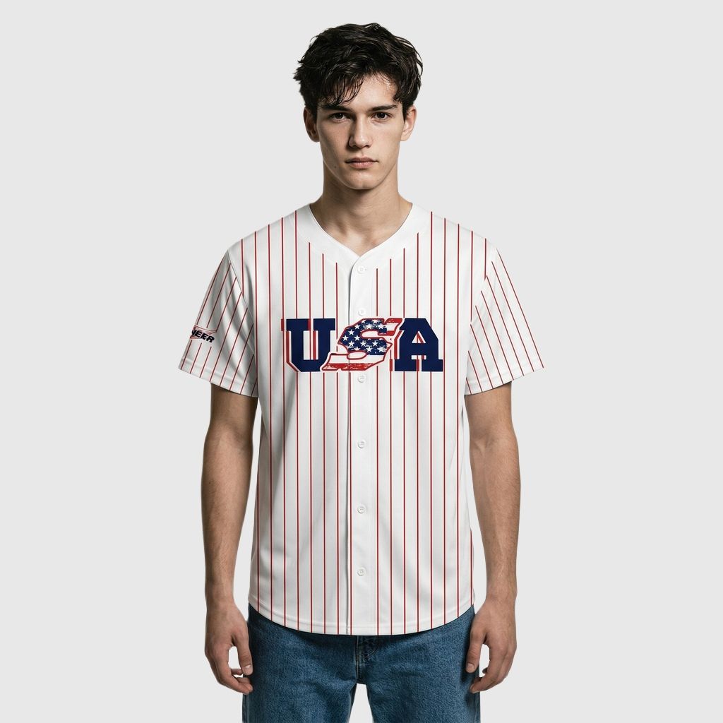 Custom USA Flag Red Pinstripe Baseball Jersey-Personalized Team Name and Number
