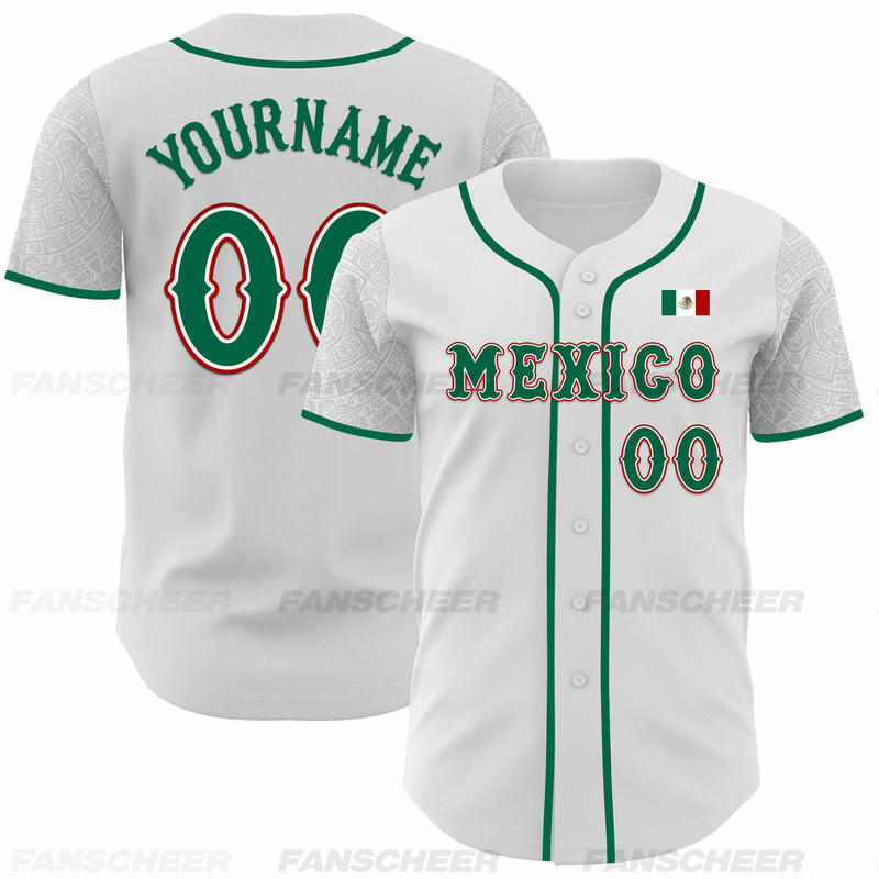 Custom White 3D Mexican Flag Authentic Baseball Jersey Perfect for Games Cinco de Mayo Celebrations and Fan Meetups
