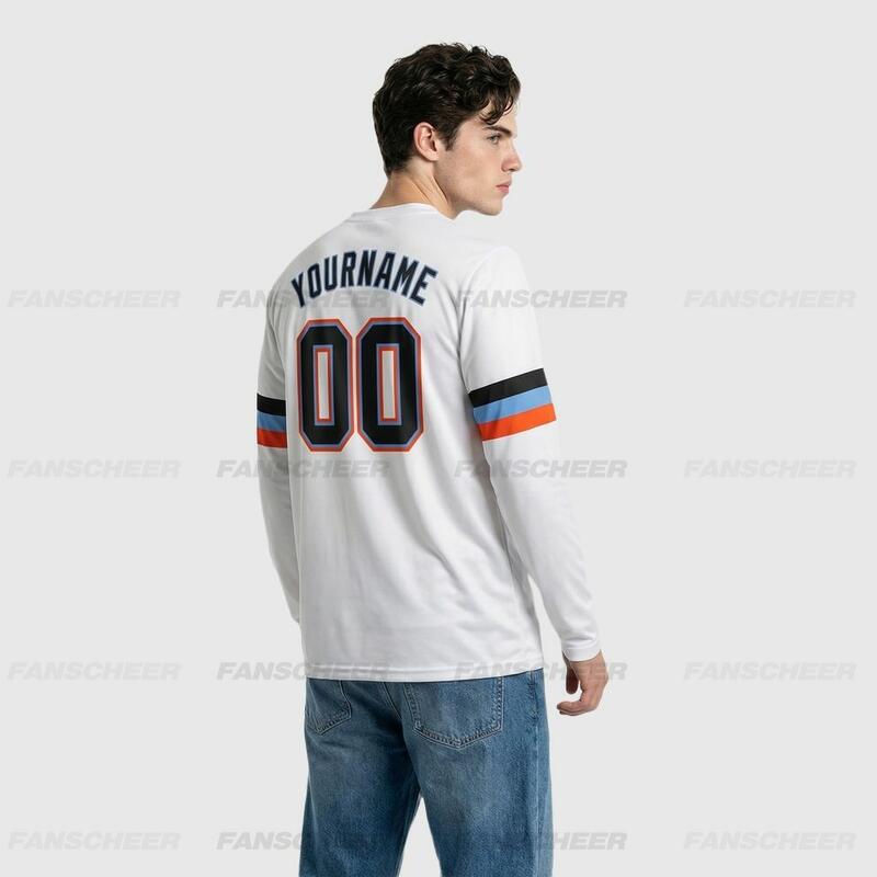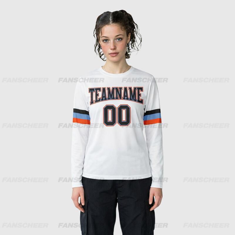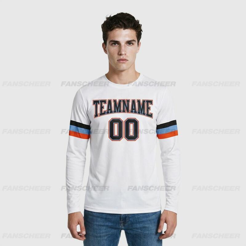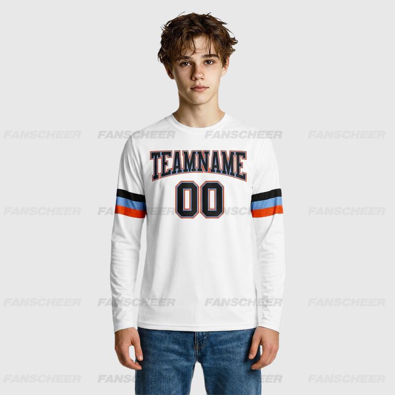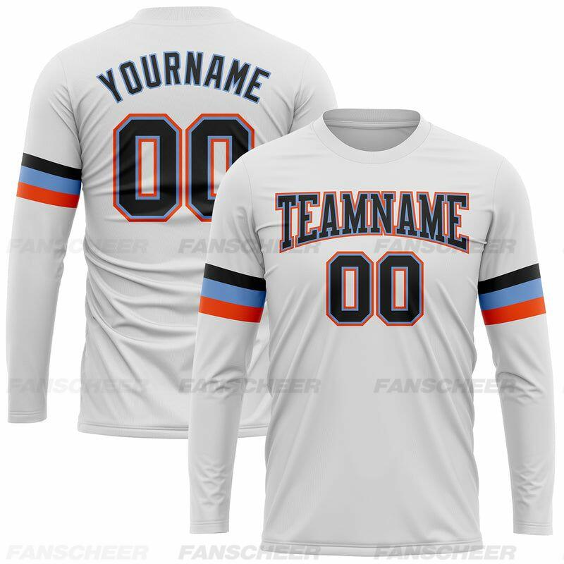 Custom White-Blue Orange Long Sleeve Performance T-Shirt