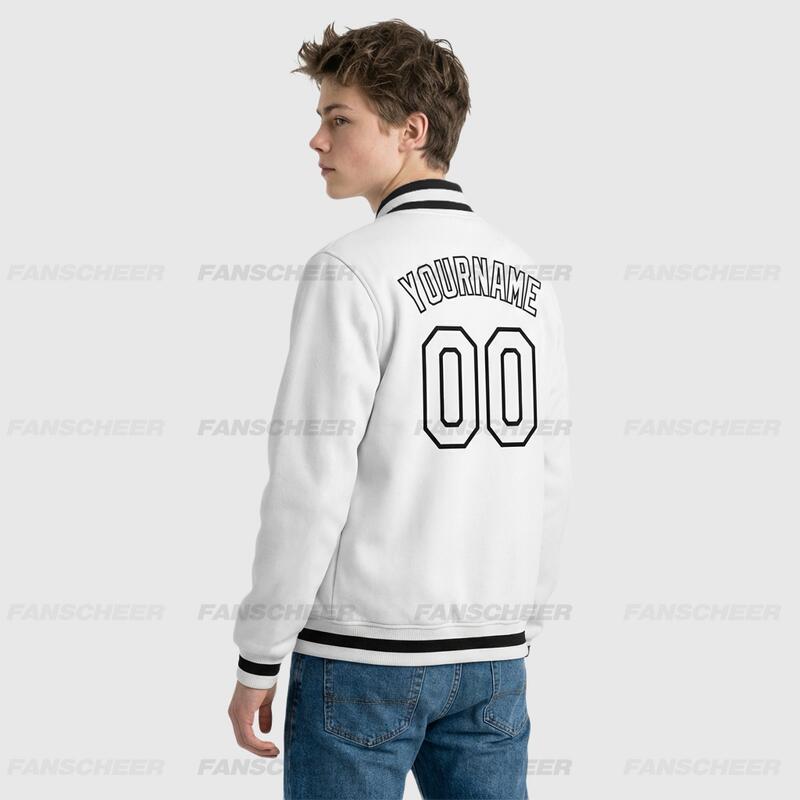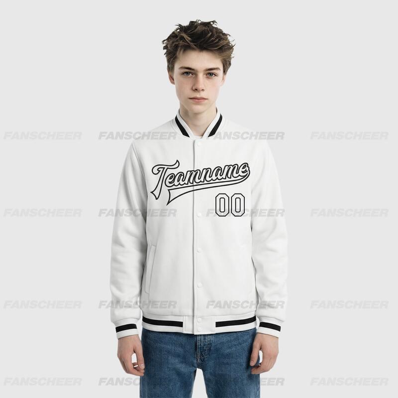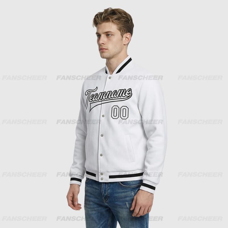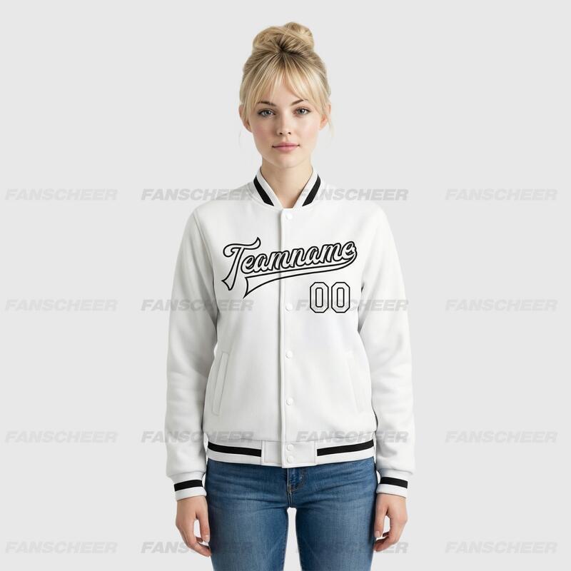 Custom White Full-Snap Varsity Letterman Jacket – Great for Light Outdoor Trips and Café Photo Shoots