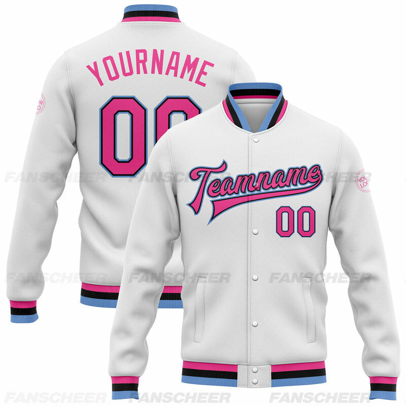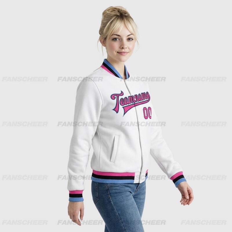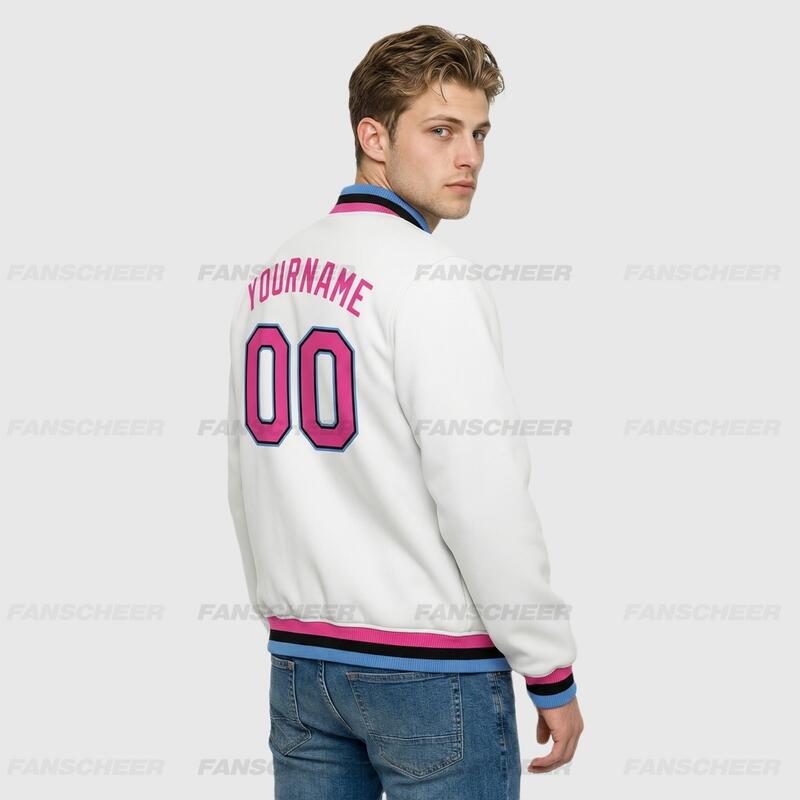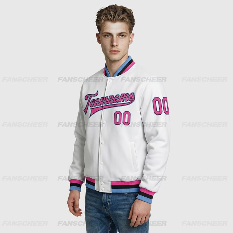 Custom White Full-Snap Varsity Letterman Jacket – Ideal for Campus Daily Wear and Office Smart-Casual Outfits
