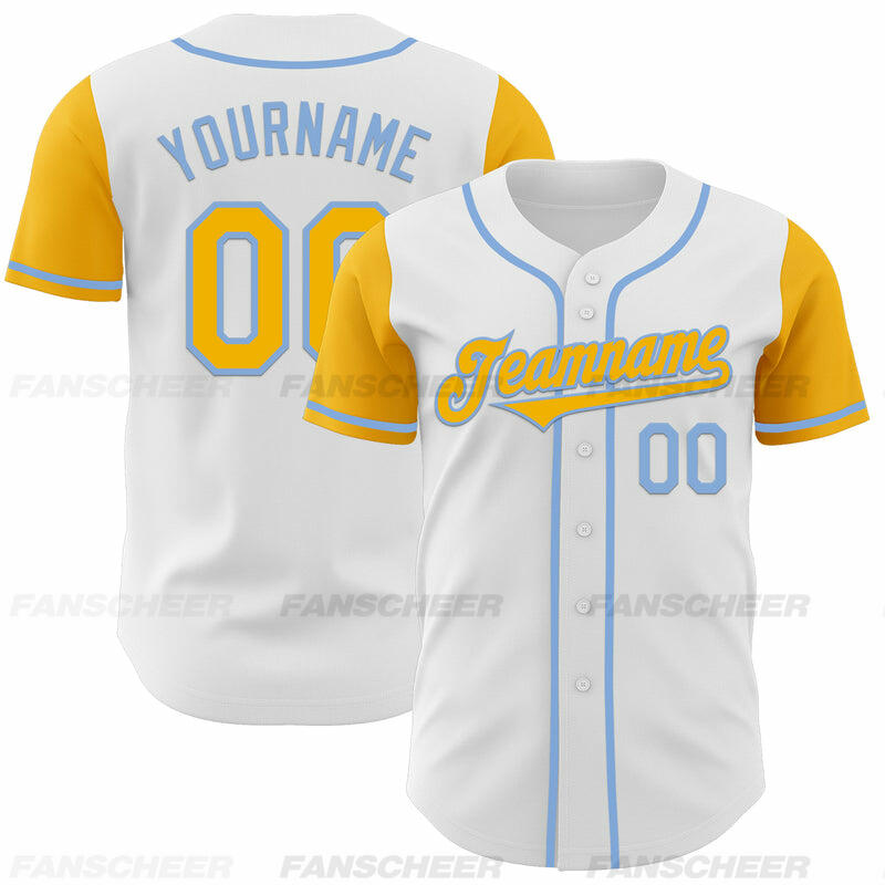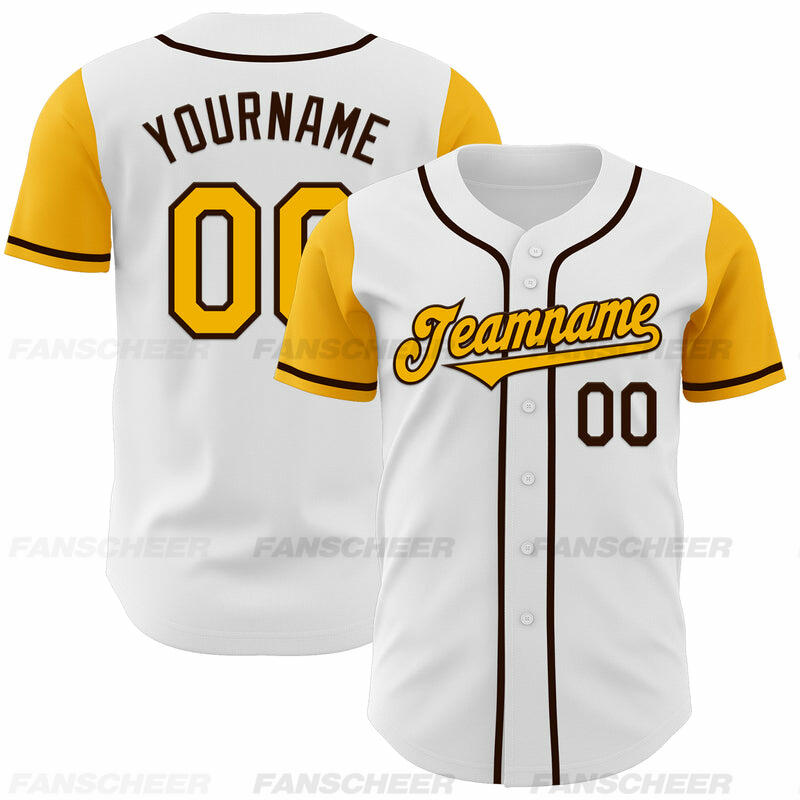 Custom White Gold Authentic Two Tone Baseball Jersey with Personalized Number and Logo for Games Practices and Fan Events