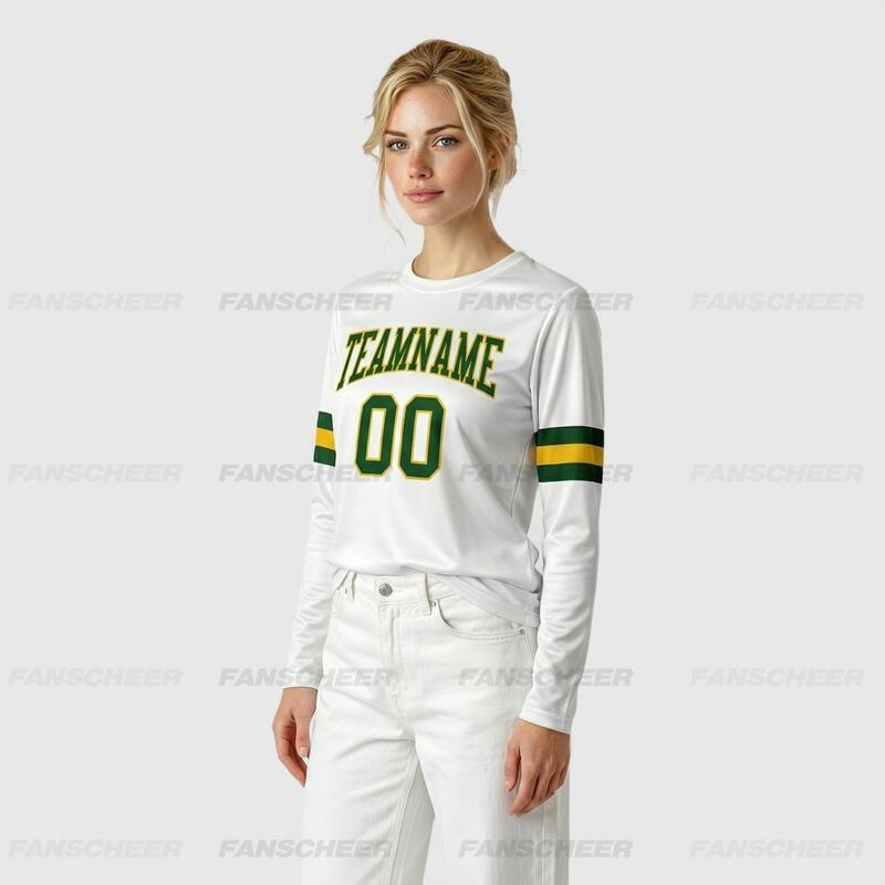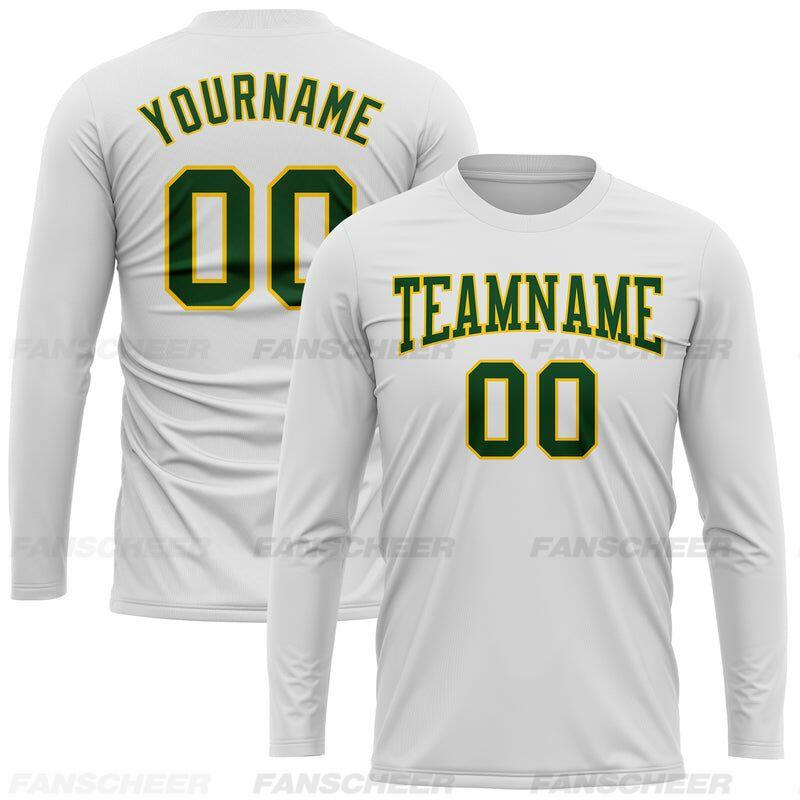 Custom White-Green Long Sleeve Performance T-Shirt