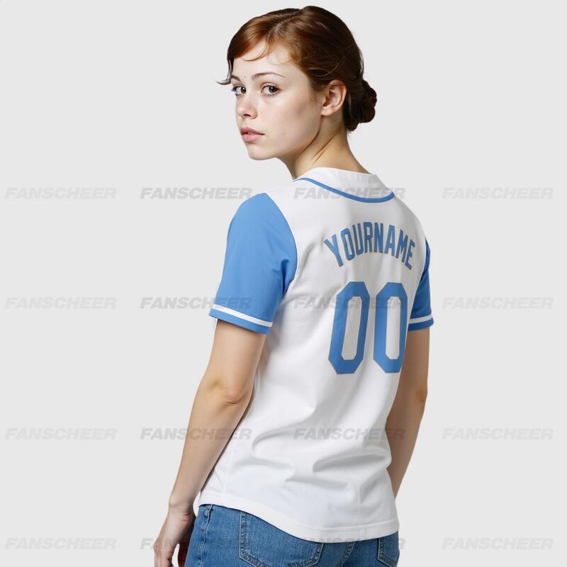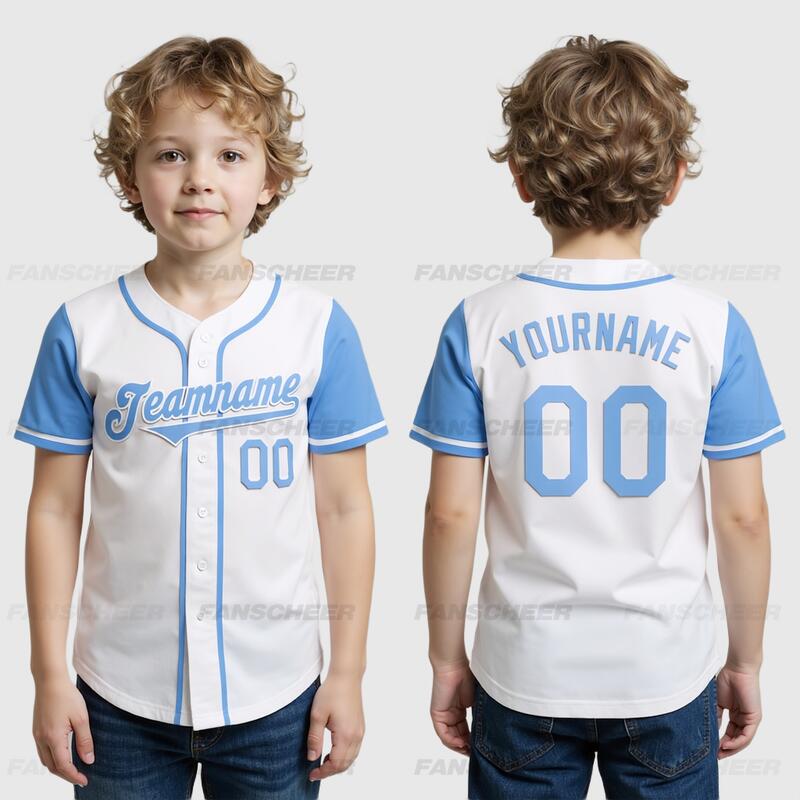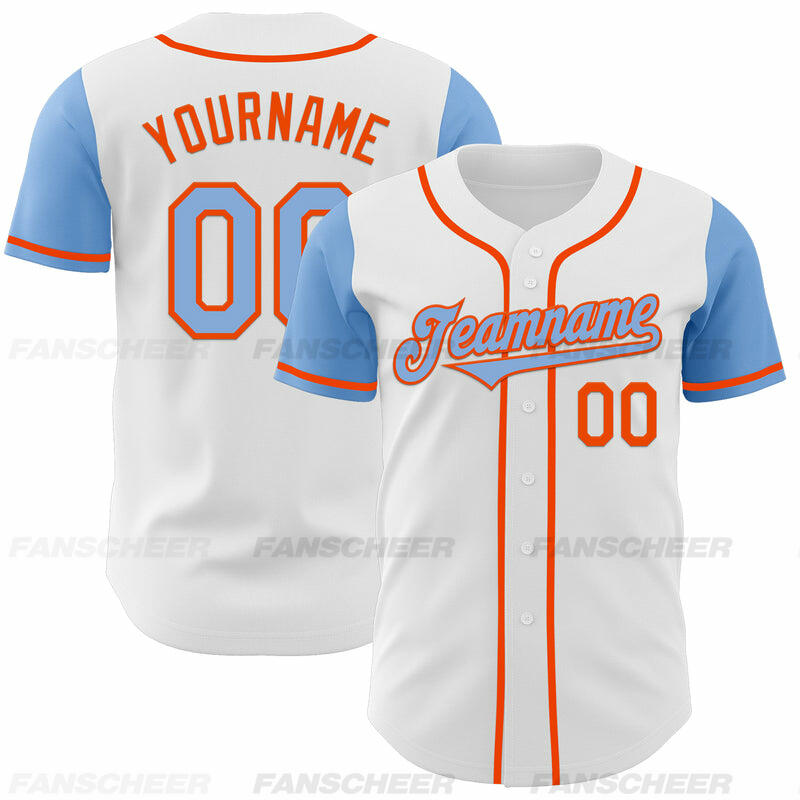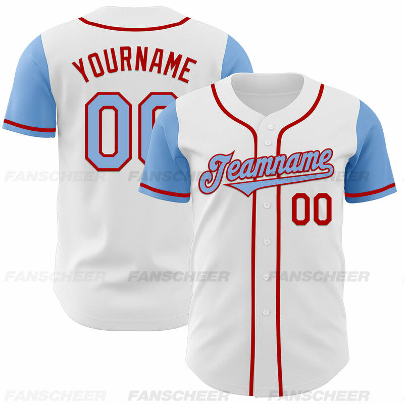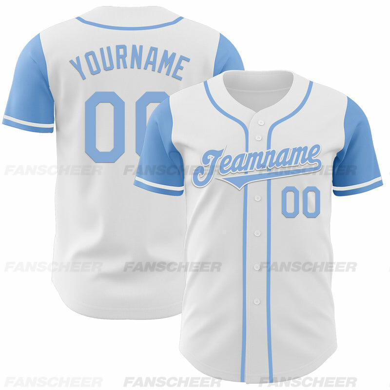 Custom White Light Blue Authentic Two Tone Baseball Jersey with Personalized Number and Logo for Games Practices and Fan Events