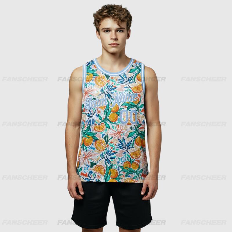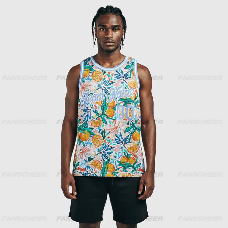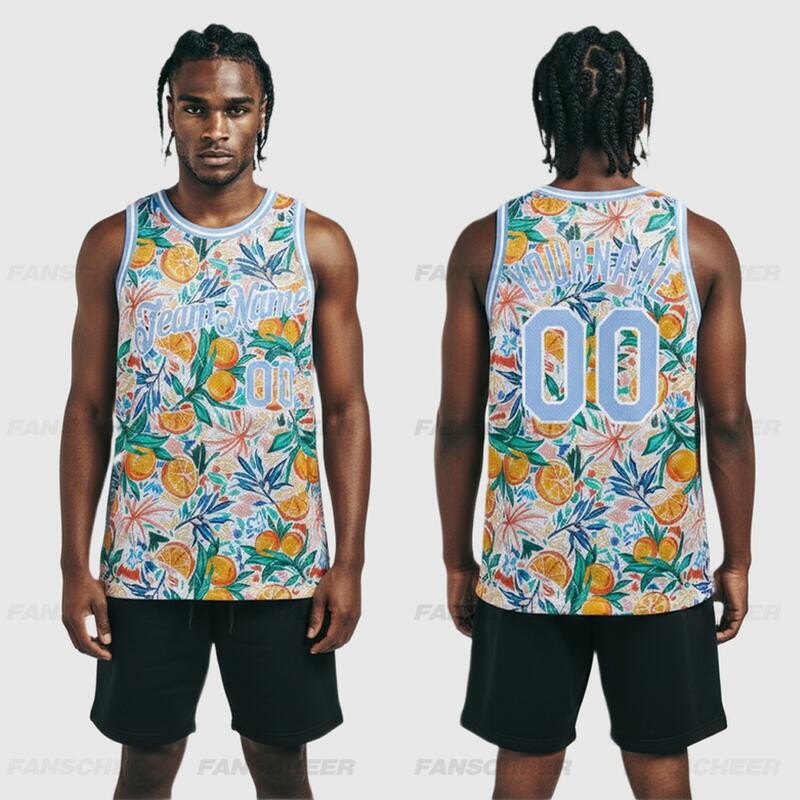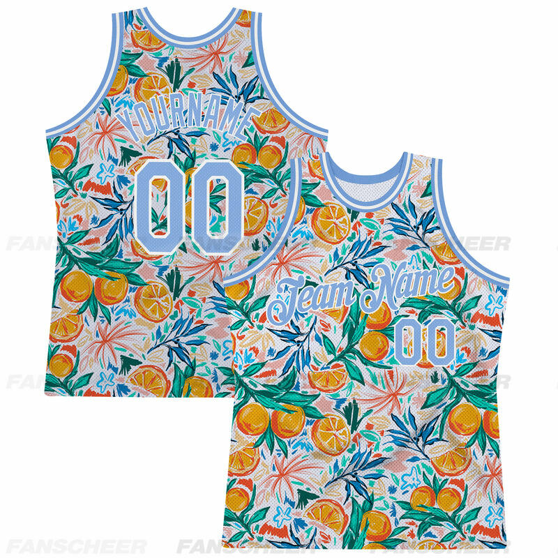 Custom White Light Blue-White 3D Pattern Design Oranges Authentic Basketball Jersey
