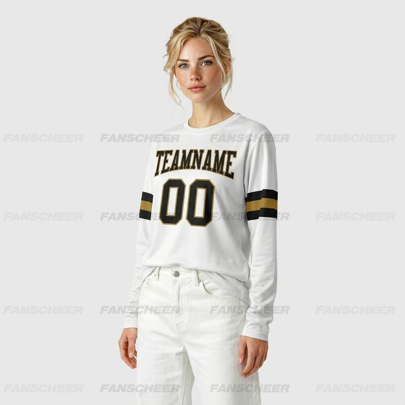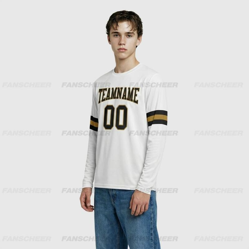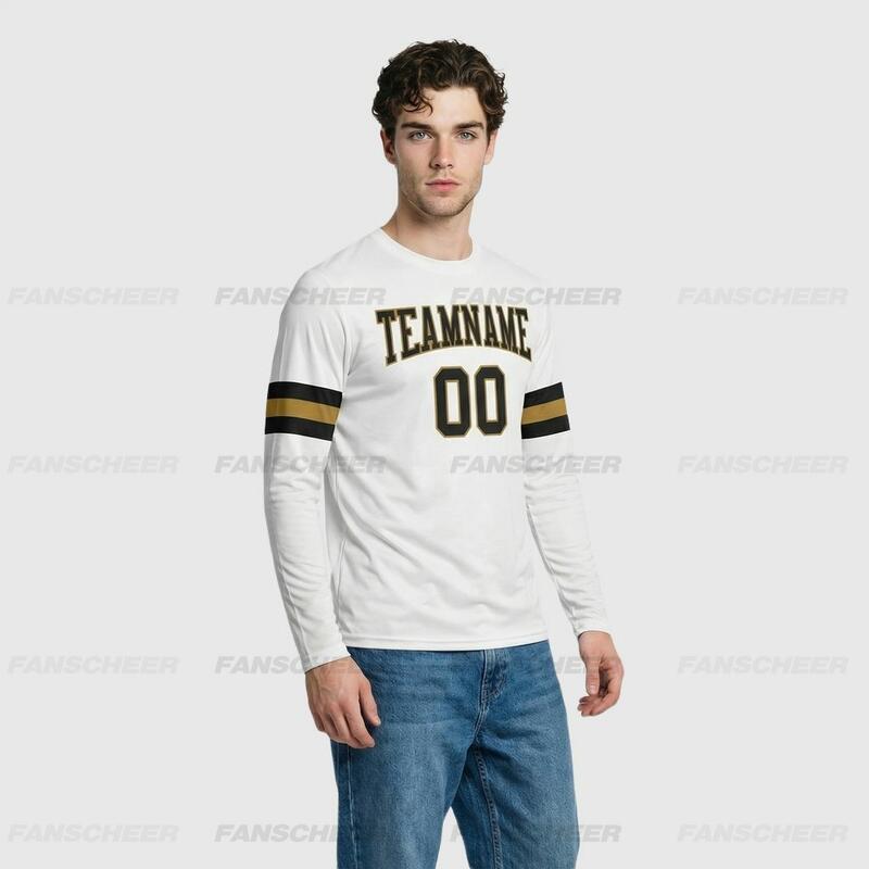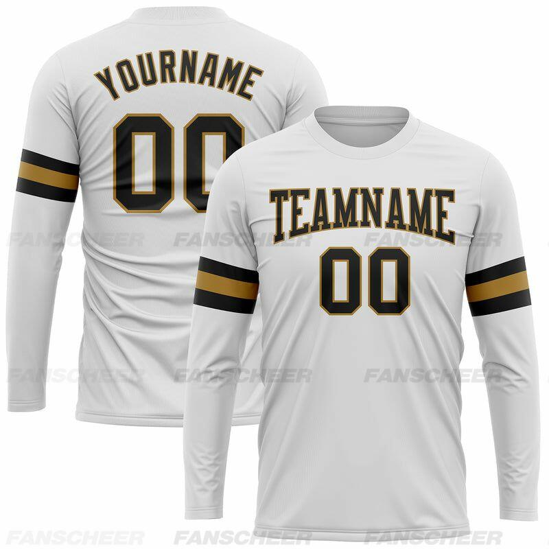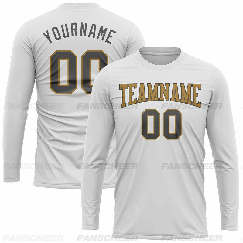 Custom White-Old Gold Long Sleeve Performance T-Shirt