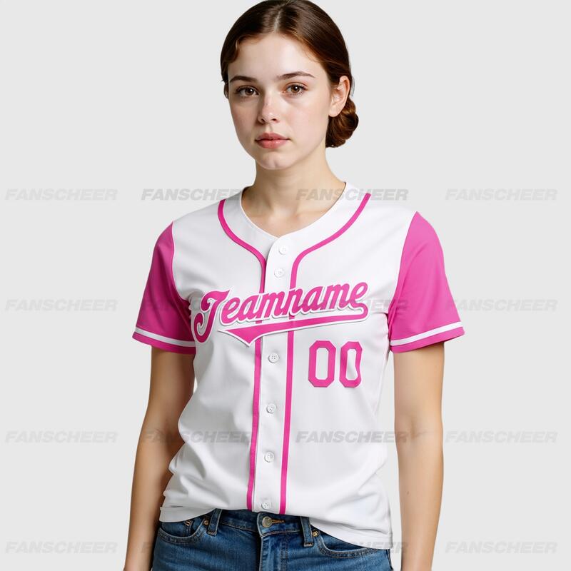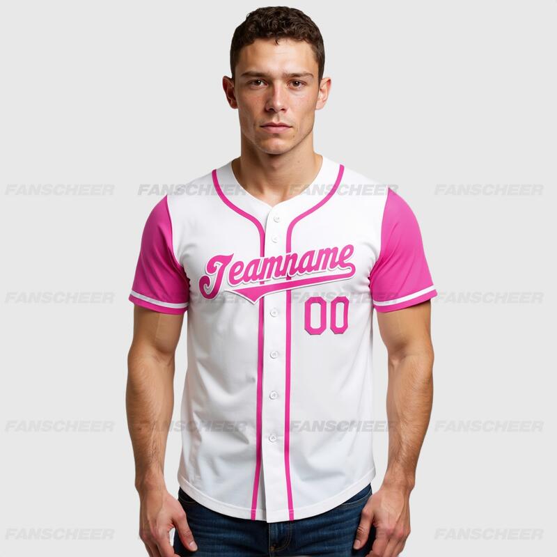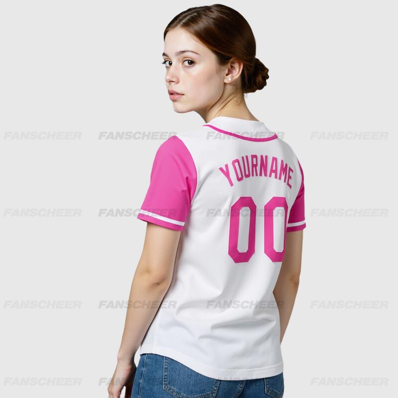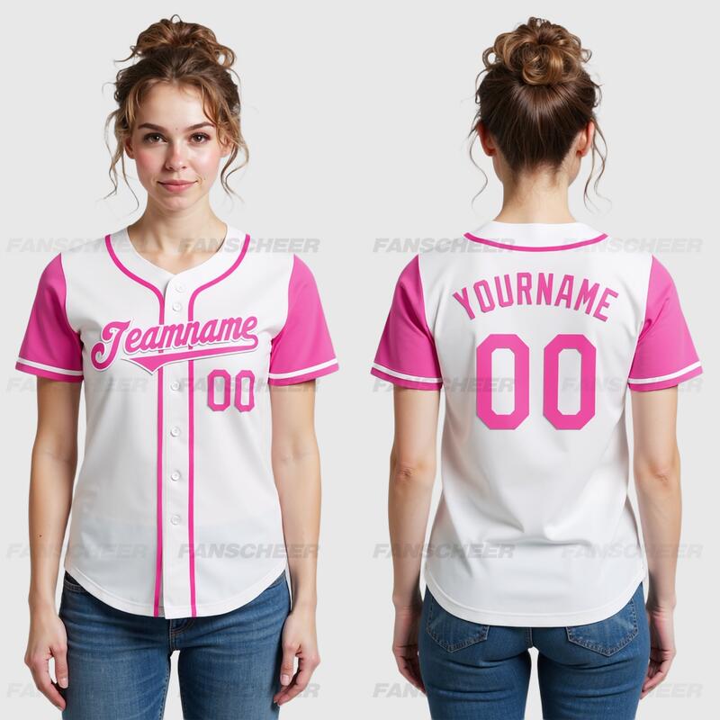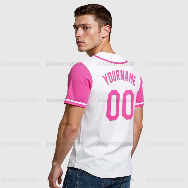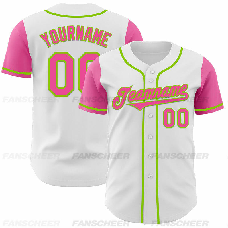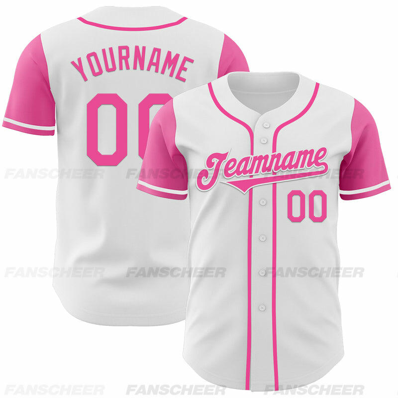 Custom White Pink Authentic Two Tone Baseball Jersey with Personalized Number and Logo for Games Practices and Fan Events