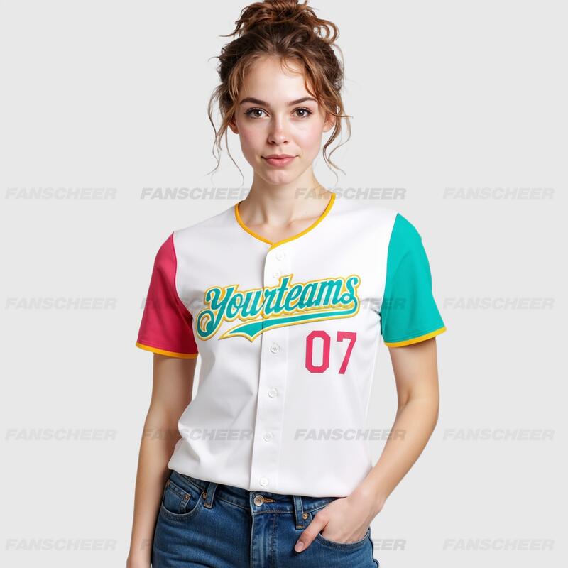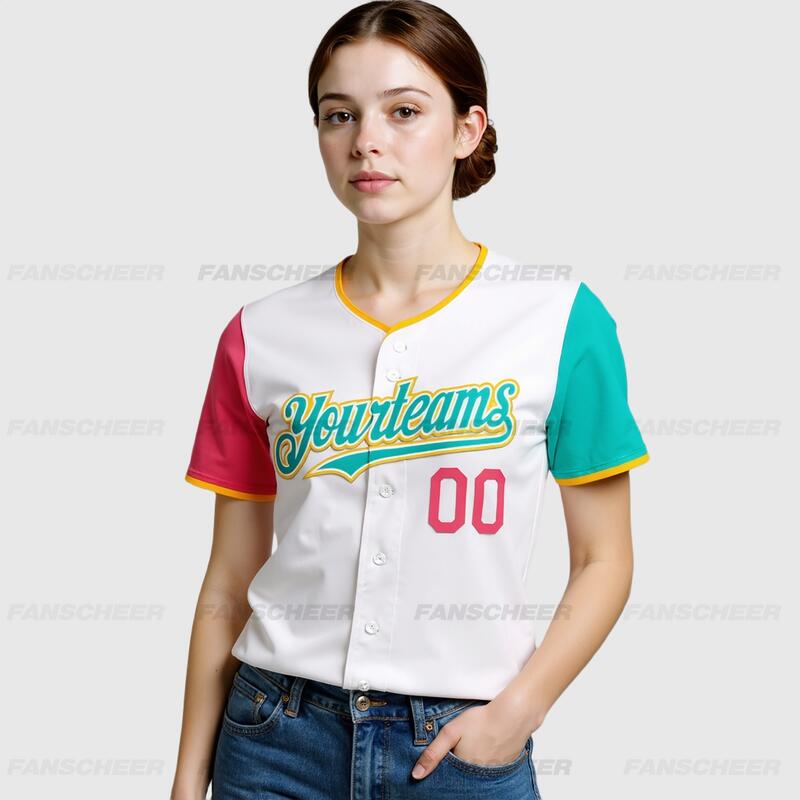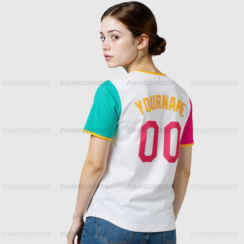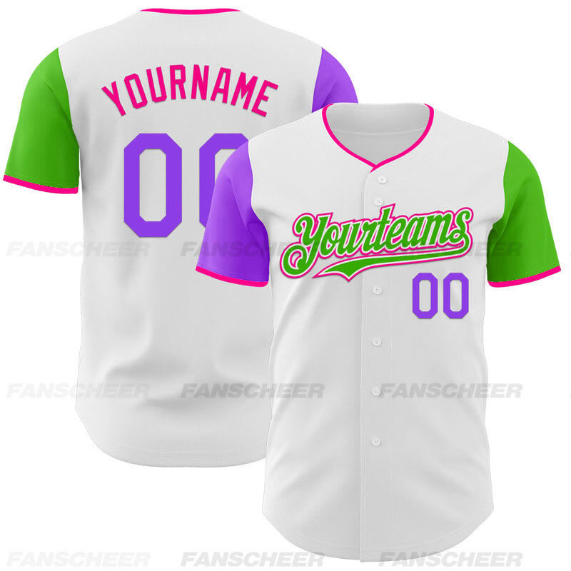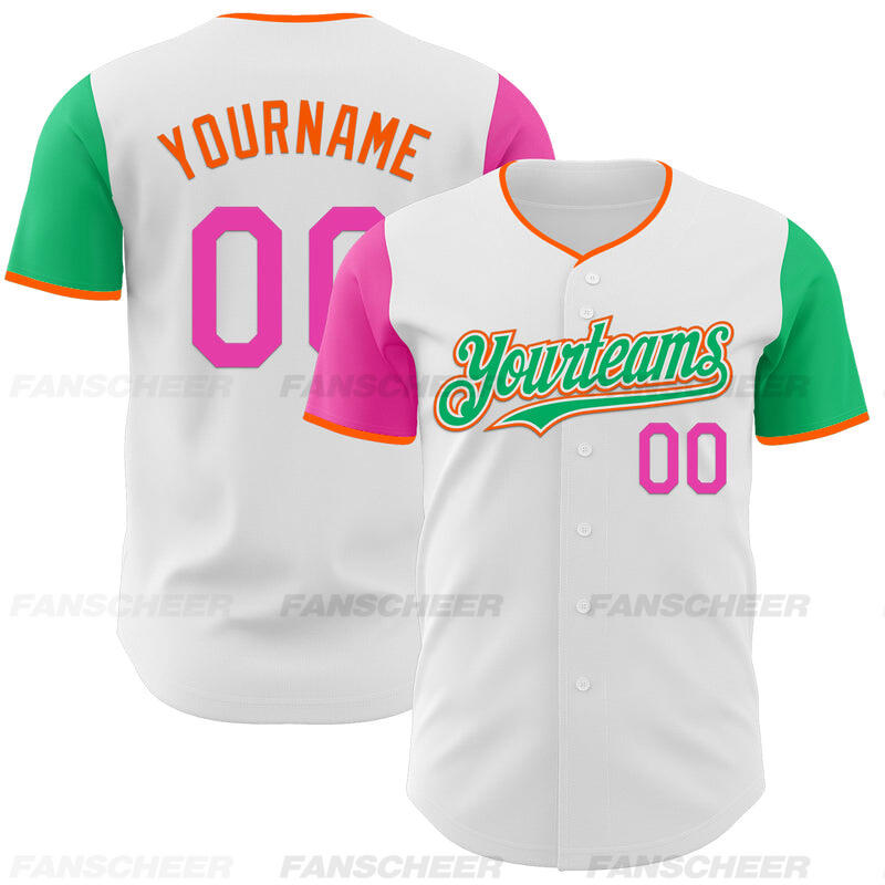 Custom White Pink Neon Green Authentic Two Tone Baseball Jersey with Personalized Number and Logo for Games Practices and Fan Events