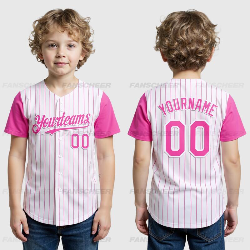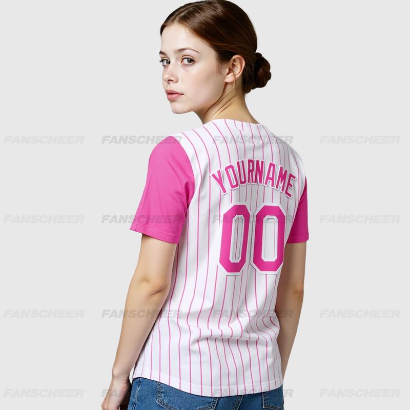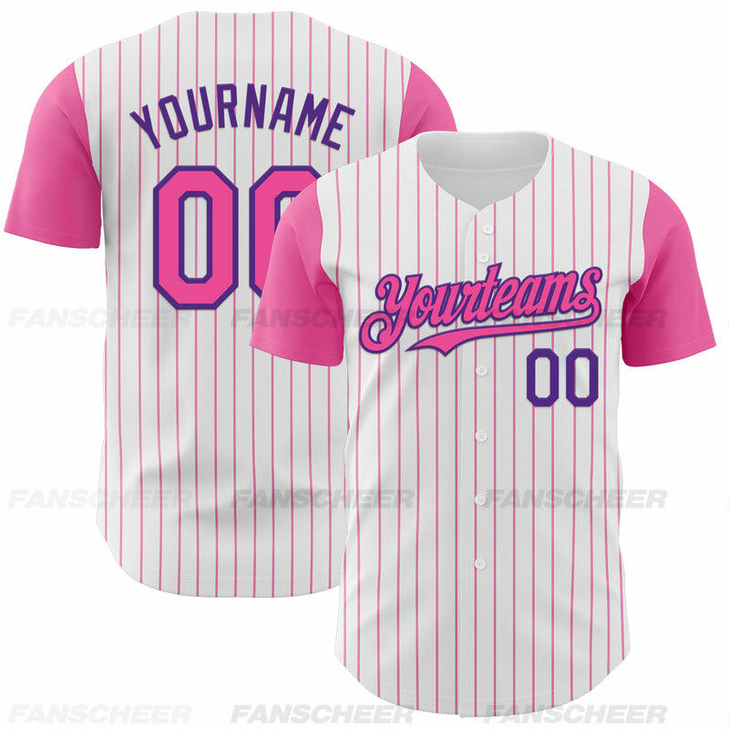 Custom White Pink Pinstripe Authentic Two Tone Baseball Jersey with Personalized Number and Logo for Games Practices and Fan Events