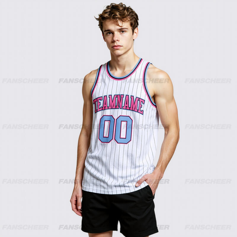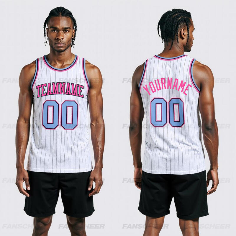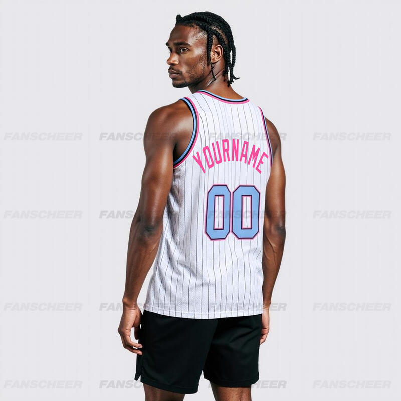 Custom White Pinstripe Basketball Jersey - Authentic Material, Sharp Stripes, Player ID