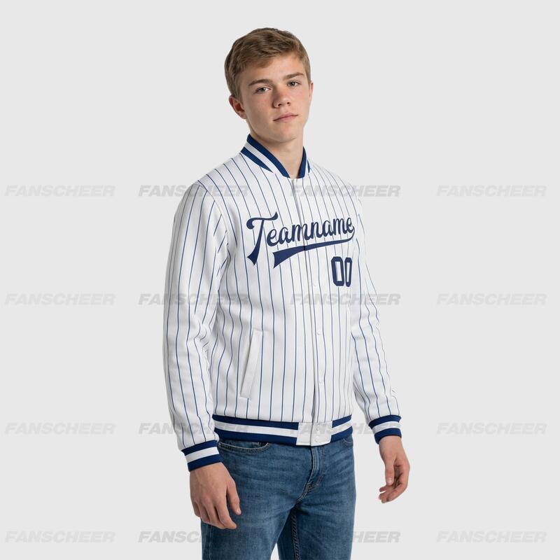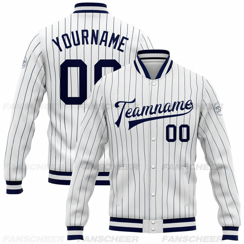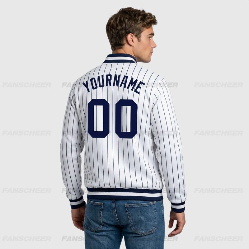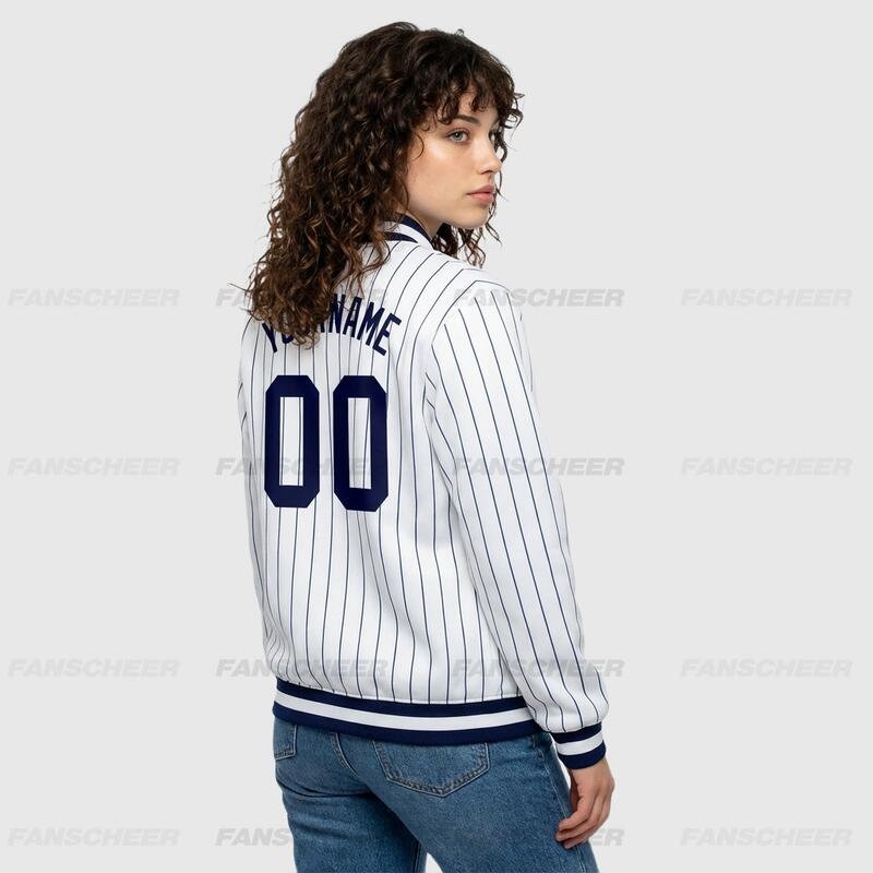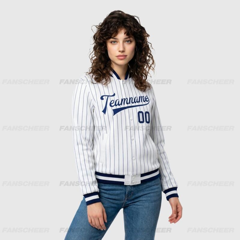 Custom White Pinstripe Full-Snap Varsity Jacket-Great for Vintage Flea Markets