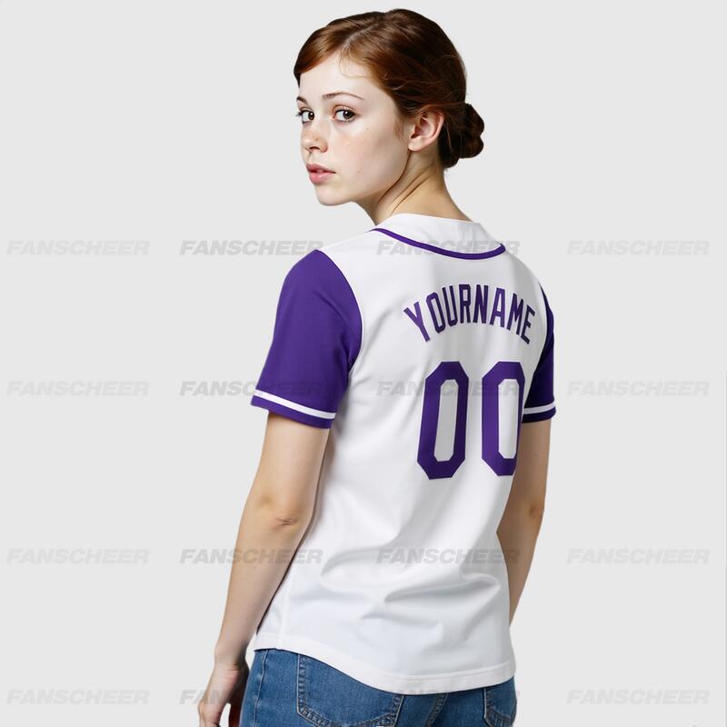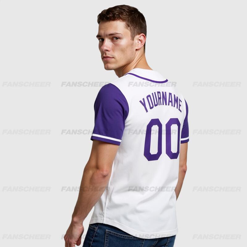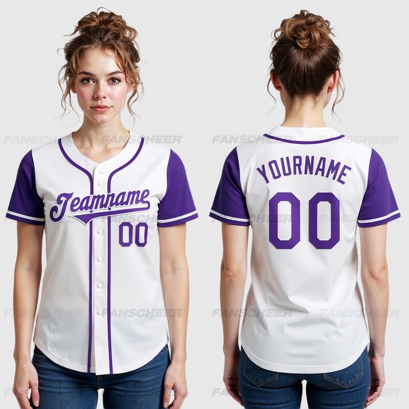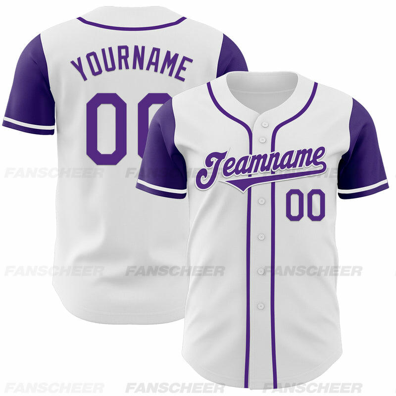 Custom White Purple Authentic Two Tone Baseball Jersey with Personalized Number and Logo for Games Practices and Fan Events
