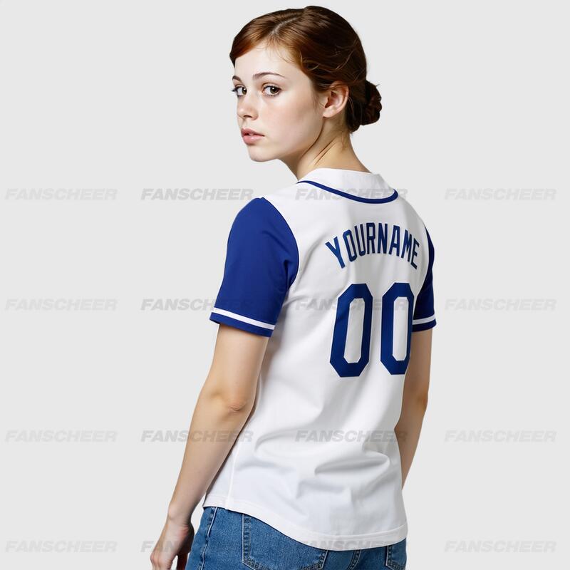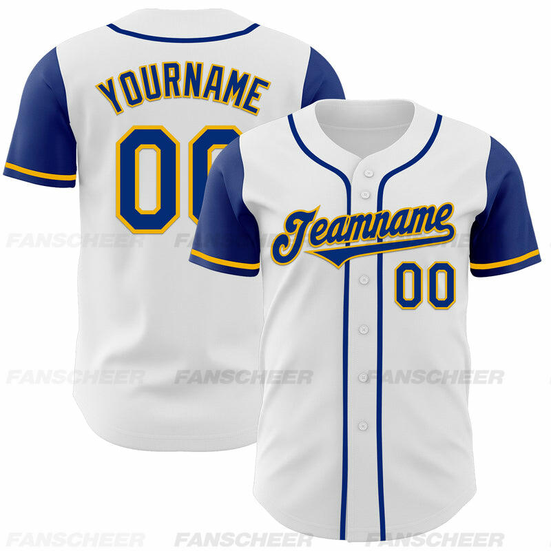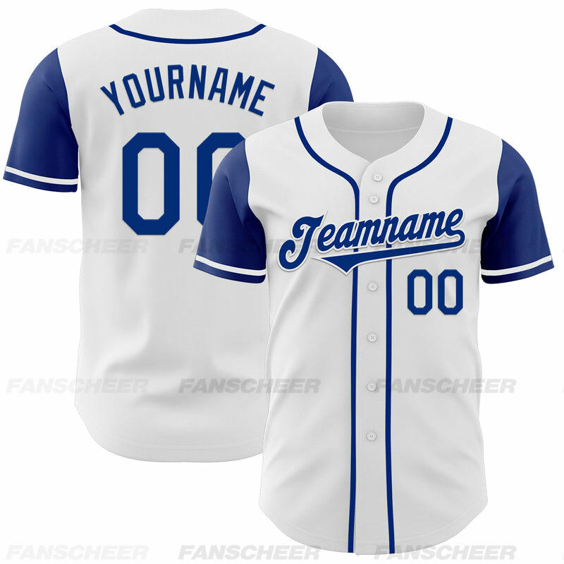 Custom White Royal Authentic Two Tone Baseball Jersey with Personalized Number and Logo for Games Practices and Fan Events