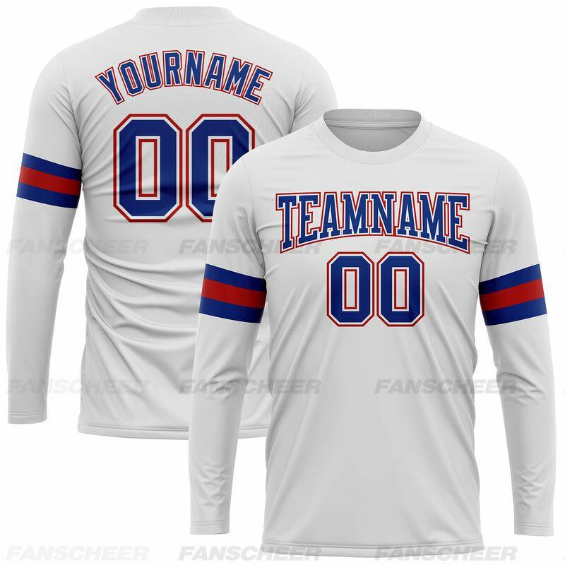 Custom White-Royal Long Sleeve Performance T-Shirt
