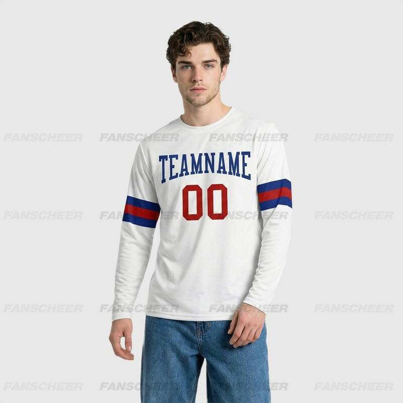 Custom White-Royal Red Long Sleeve Performance T-Shirt