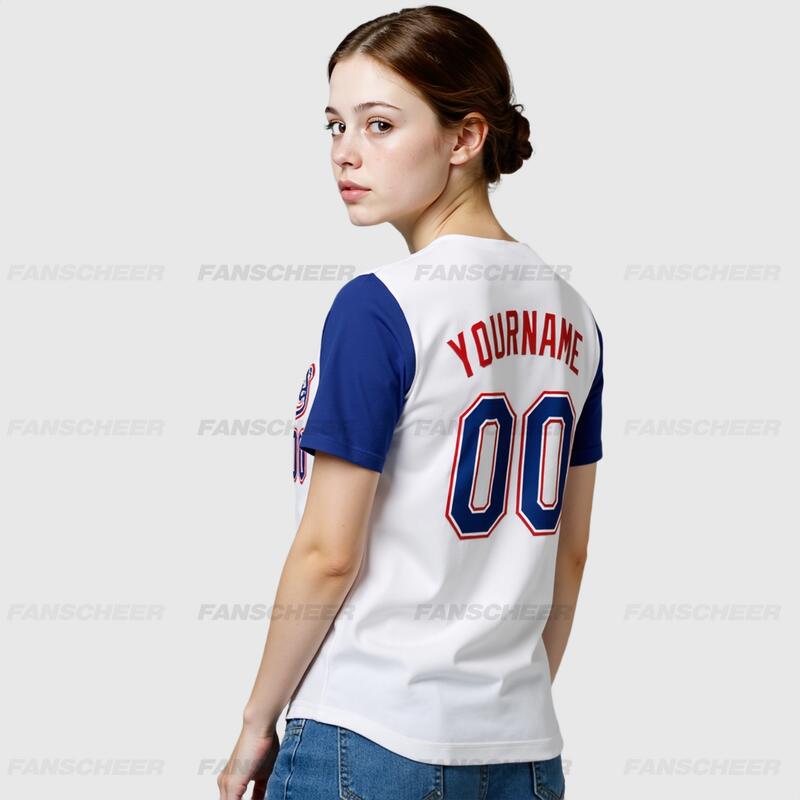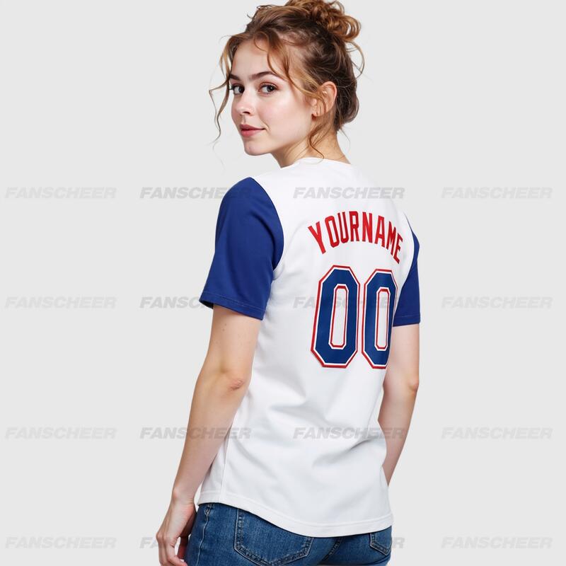 Custom White Royal Two Tone Baseball Jersey with Personalized Number and Logo for Games Practices and Fan Events