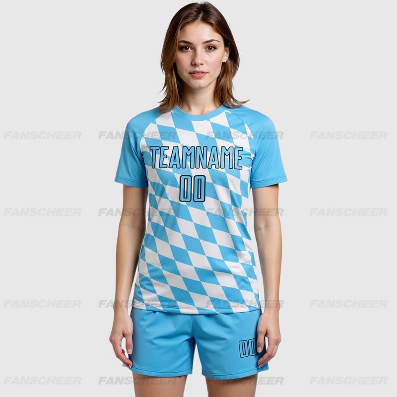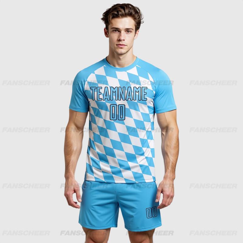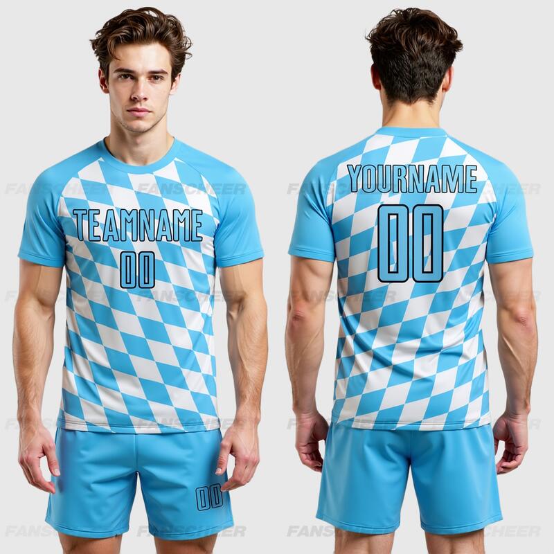 Custom White Sky Blue-Black Bavarian Flag Sublimation Soccer Uniform Jersey