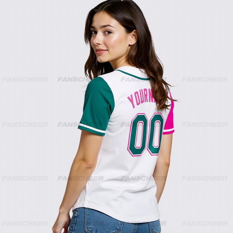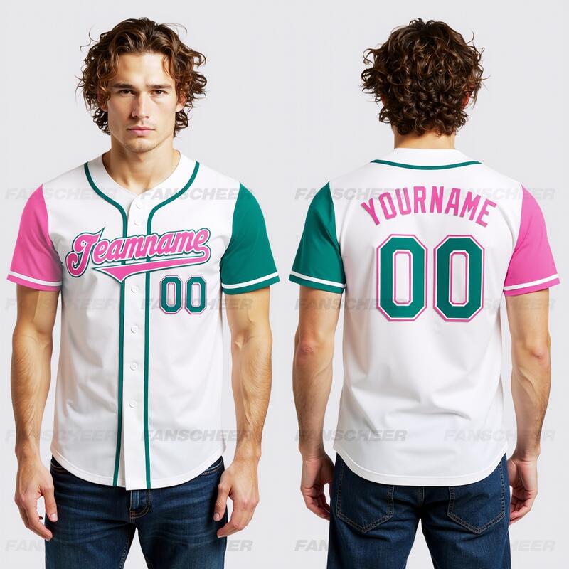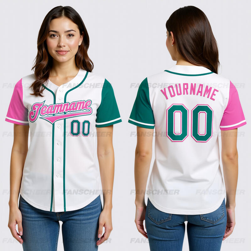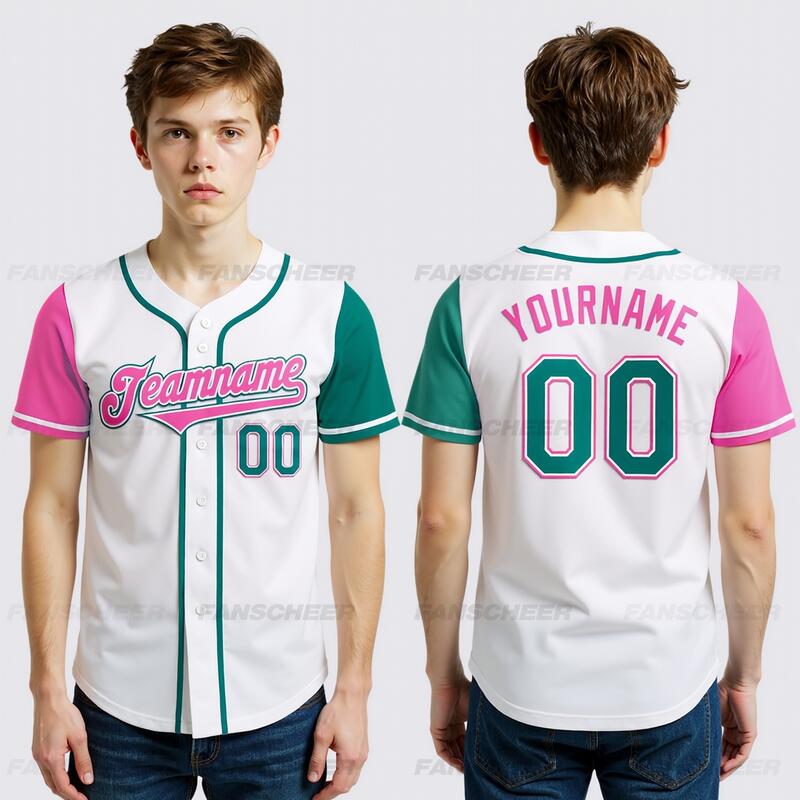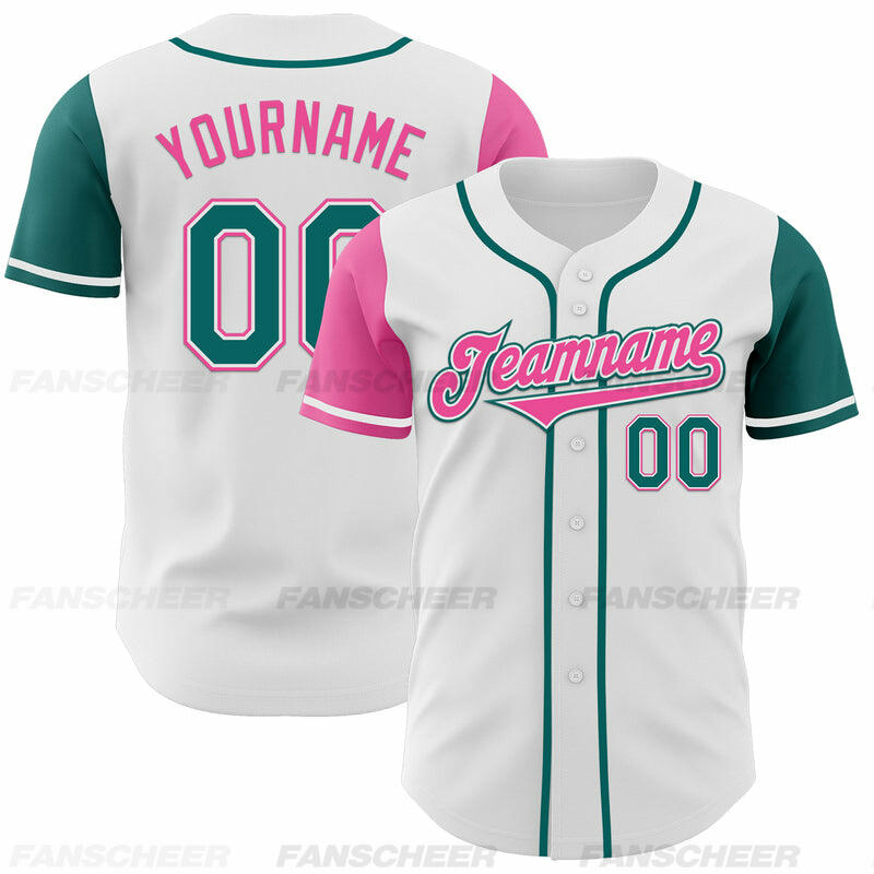 Custom White Teal and Pink Two Tone Authentic Baseball Jersey Versatile for Casual Outings Team Practices and Sporty Gatherings