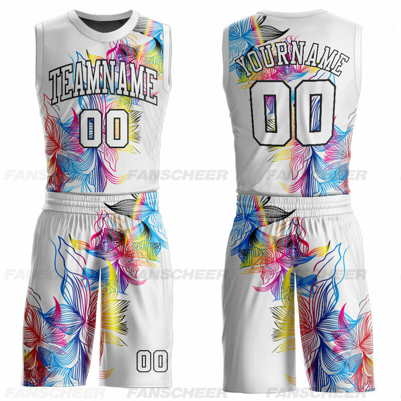 Custom White White-Black Round Neck Sublimation Basketball Suit Jersey