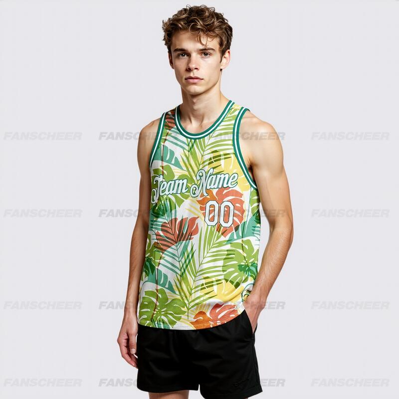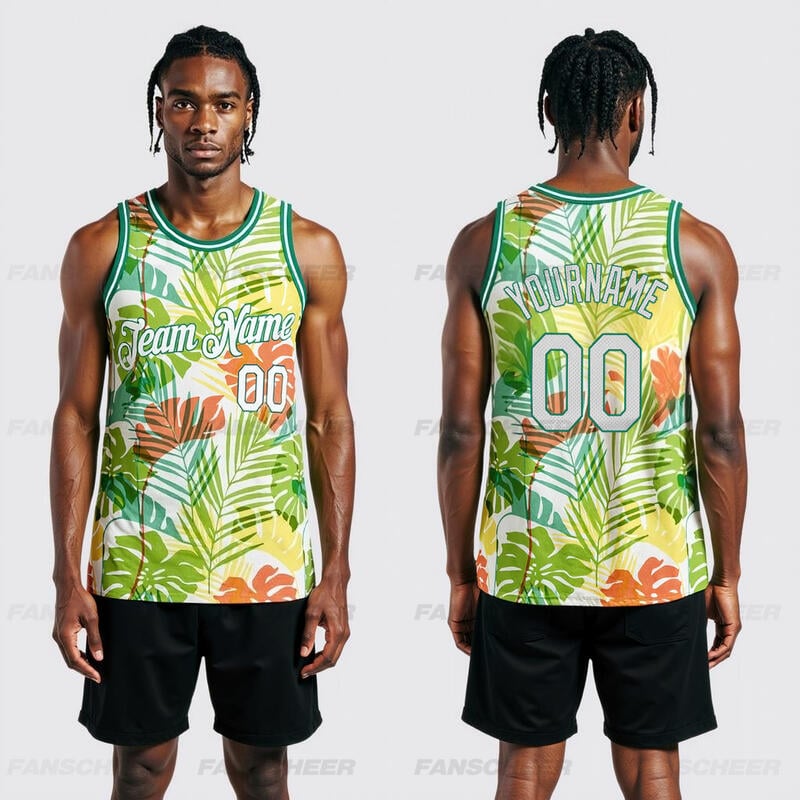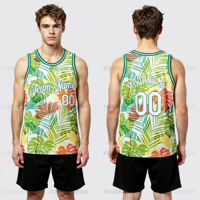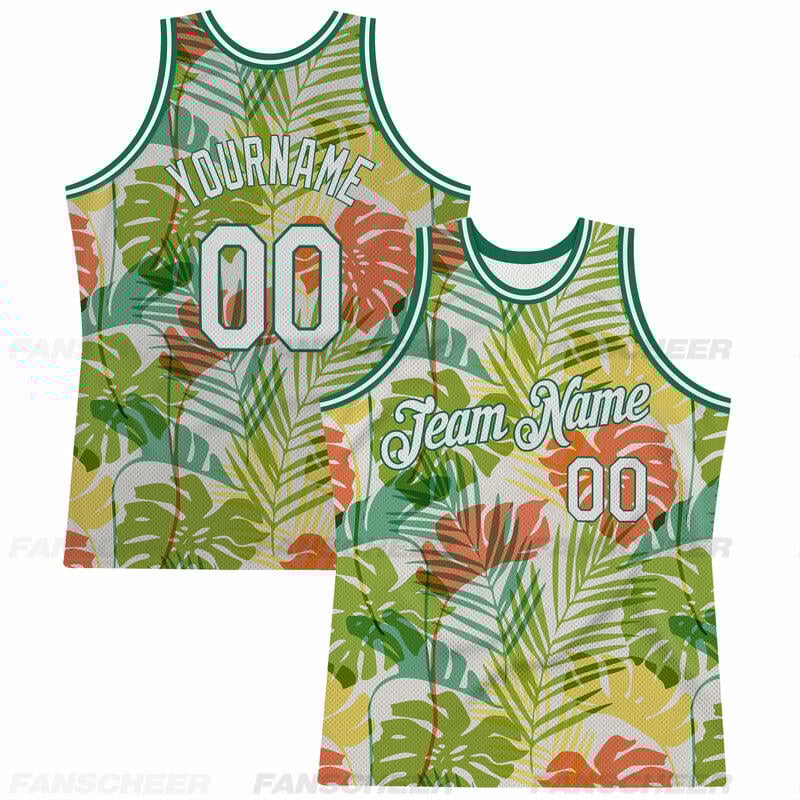 Custom White White-Kelly Green 3D Pattern Hawaii Palm Trees Authentic Basketball Jersey