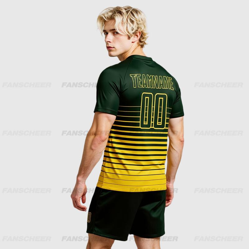 We prioritize performance with high-quality functional fabric. It's soft and skin-friendly for unrestricted movement, highly breathable to wick away sweat during intense matches, and durable enough to withstand passes, tackles, and grass friction – lasting through every game.