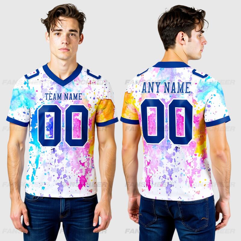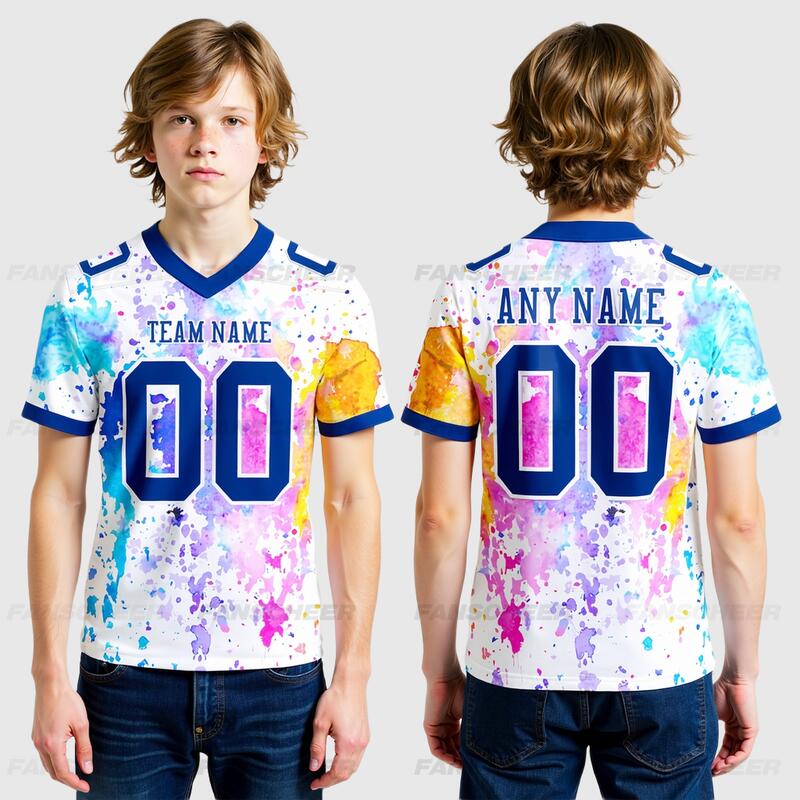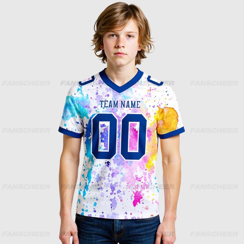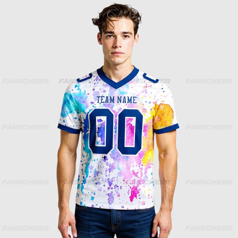 Graffiti Remix Football Tops Abstract Splatter Effects & Retro Numbering Perfect for Creative Team Identities