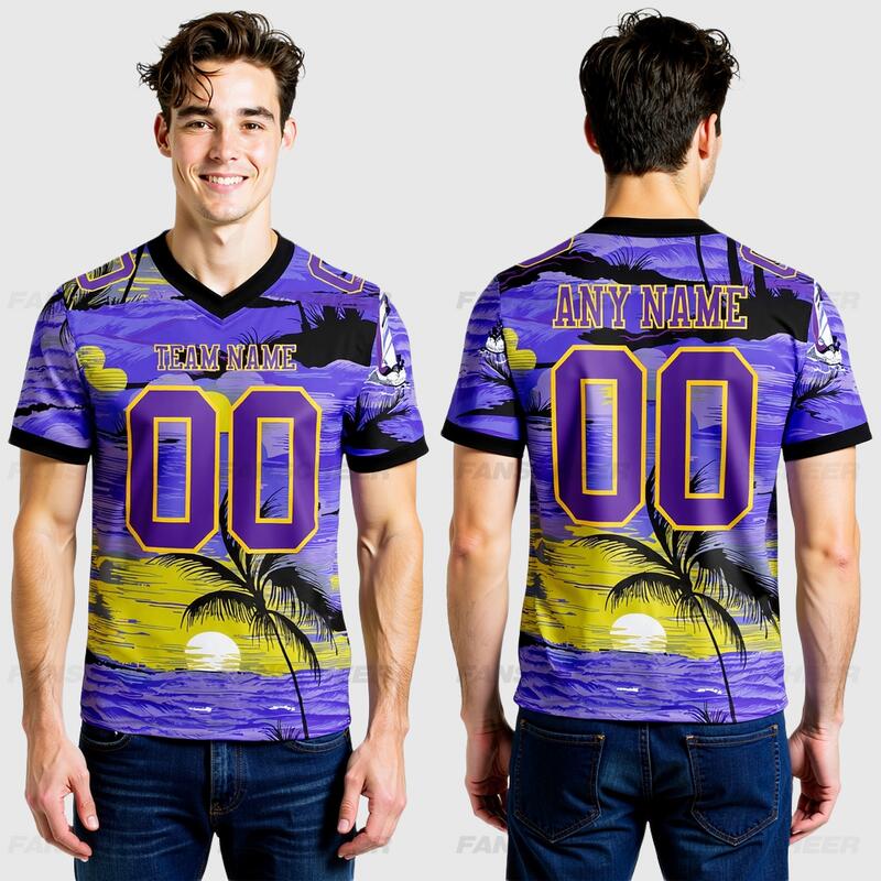 Hawaiian Sunset Football Uniforms Polynesian Carving-Inspired Graphics & Moisture-Wicking Fabric