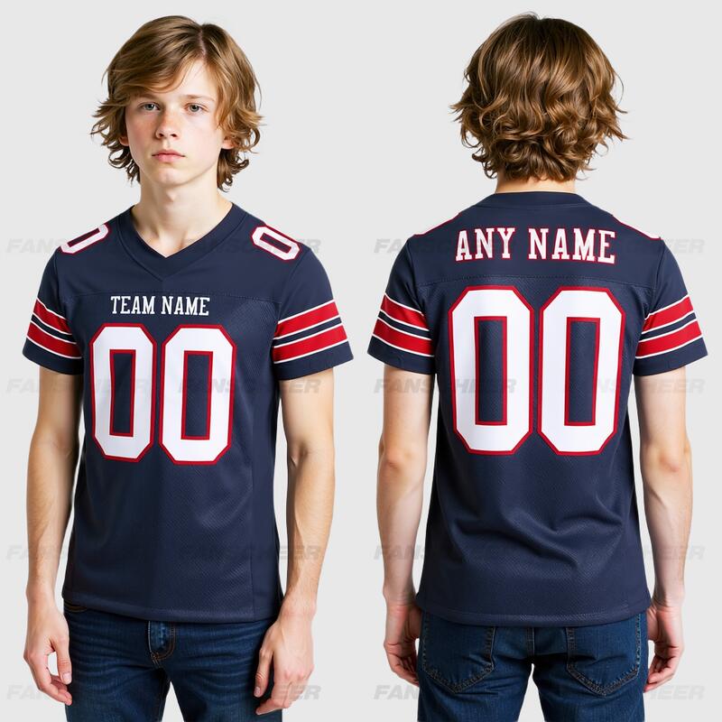 Navy Blue Football Jersey Custom - Personalized Name, Logo & Number Stitched