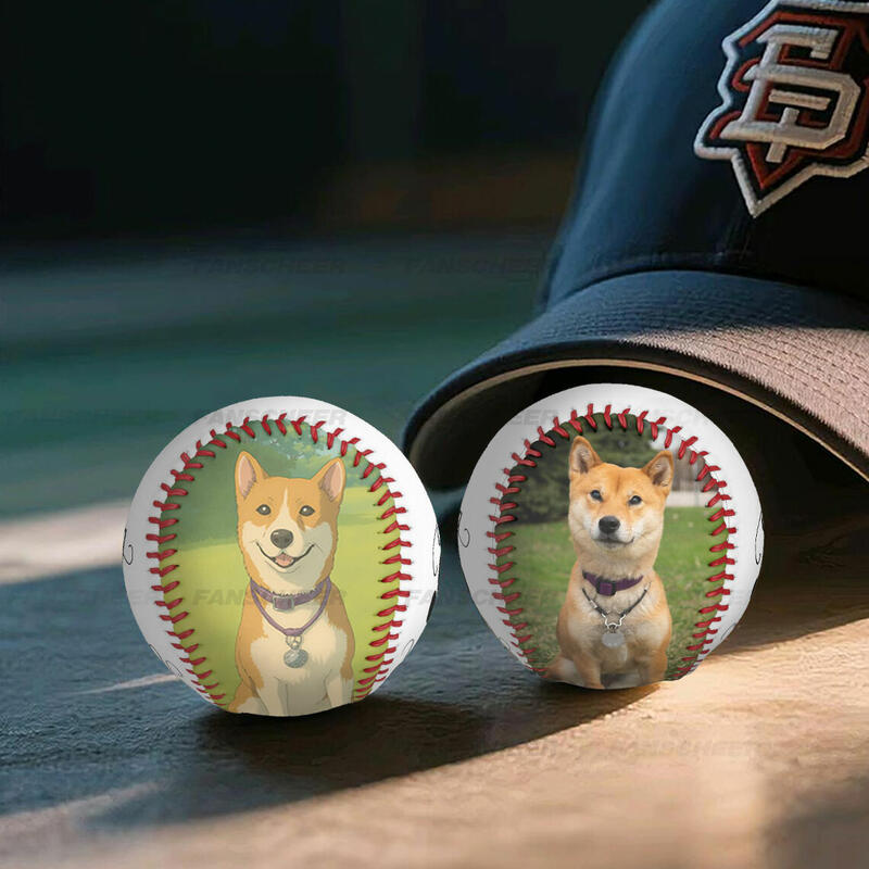 Personalized Baseball Add Pet Photo Cartoon Effect Portrait Baseball Birthday Gift for Pet Lovers