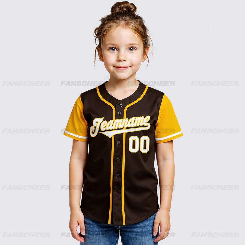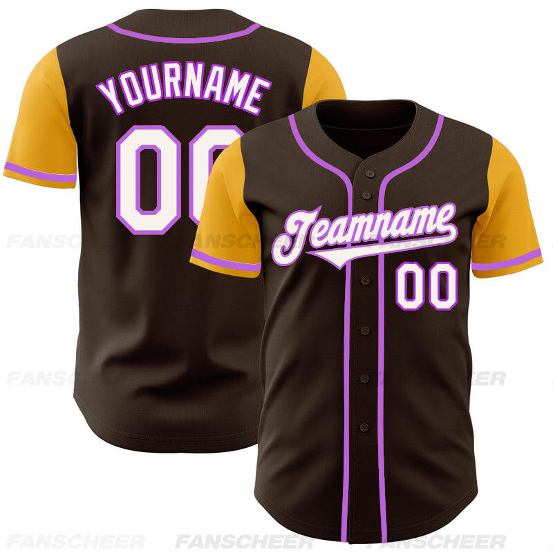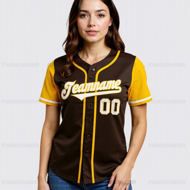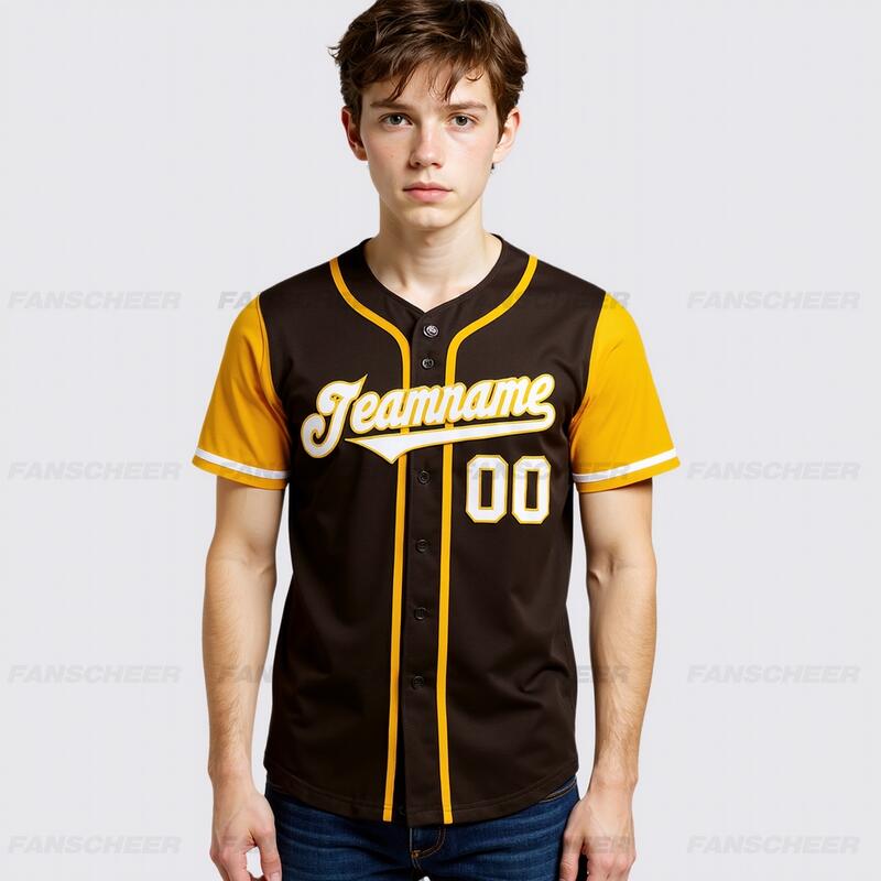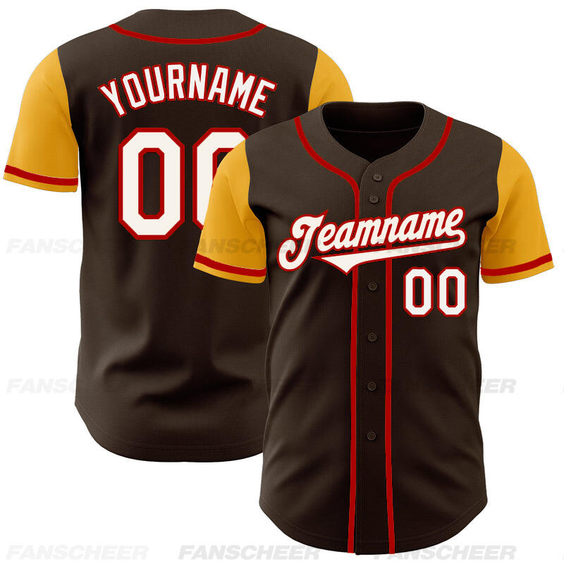 Personalized Brown Gold Two Tone Baseball Jersey Custom Number and Logo for Games Practices and Fan Use