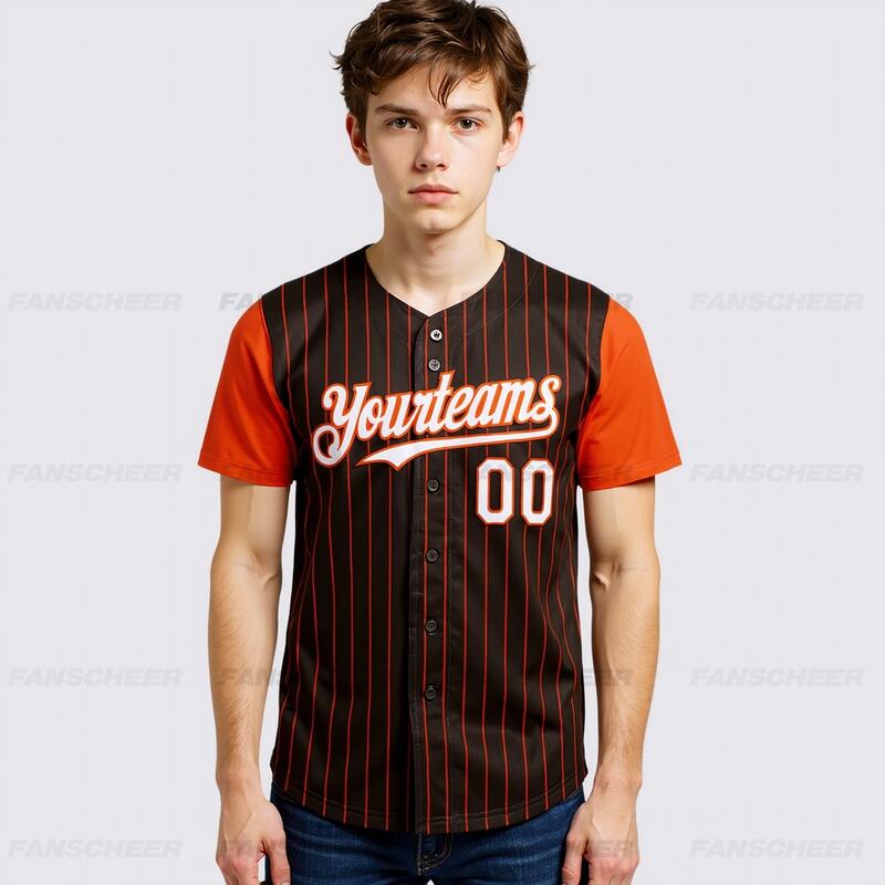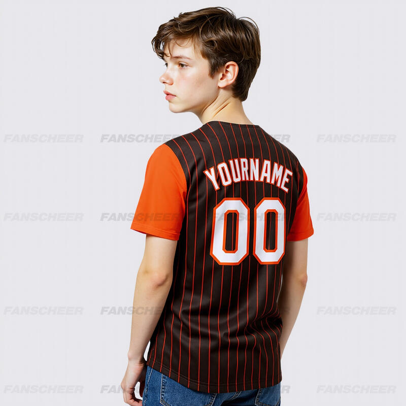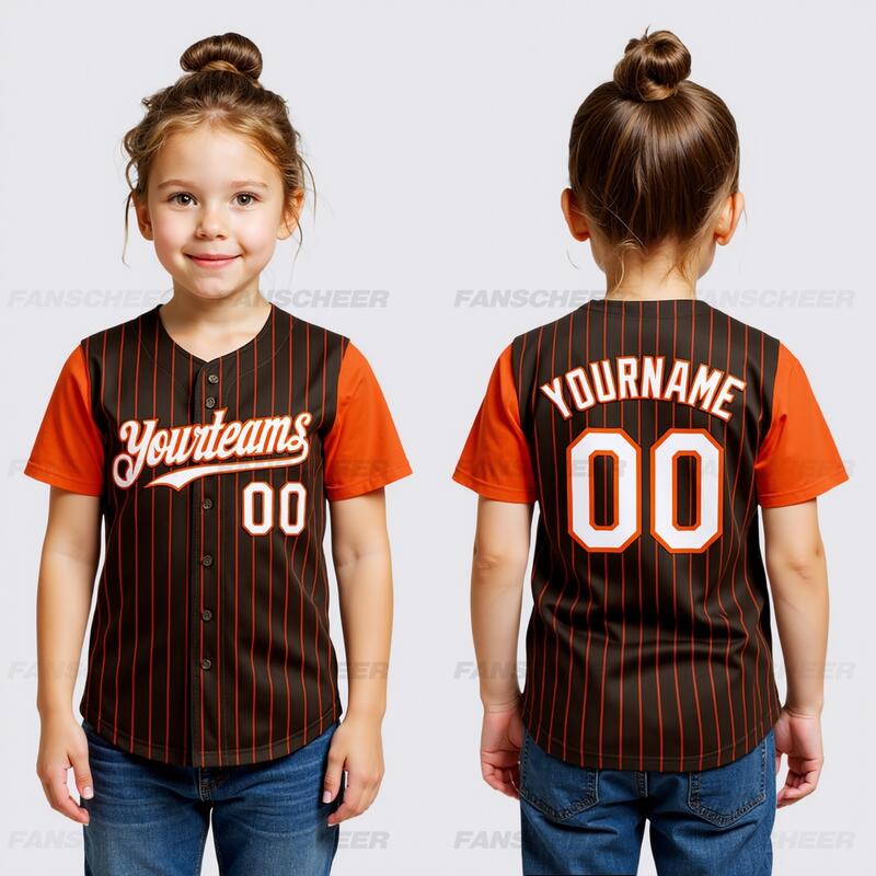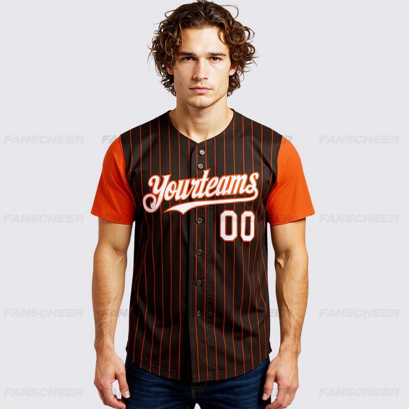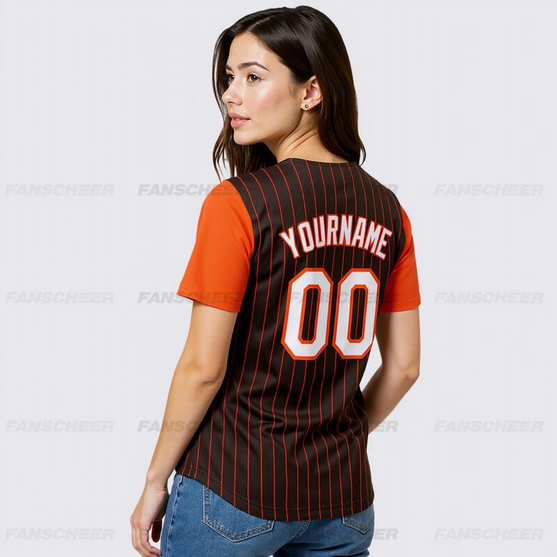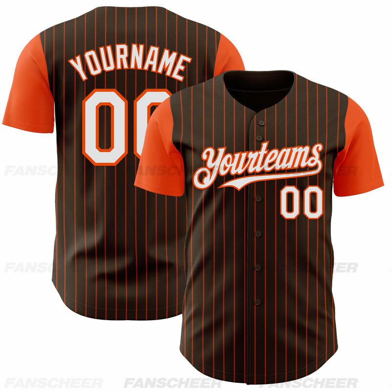 Personalized Brown Orange Pinstripe Two Tone Baseball Jersey Custom Number and Logo for Games Practices and Fan Use