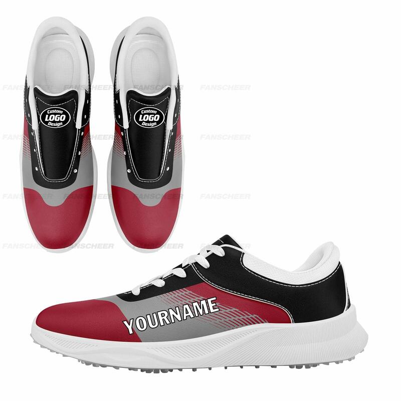 Personalized Crimson and Black Golf Shoes - Custom Name and Logo Footwear