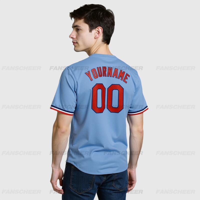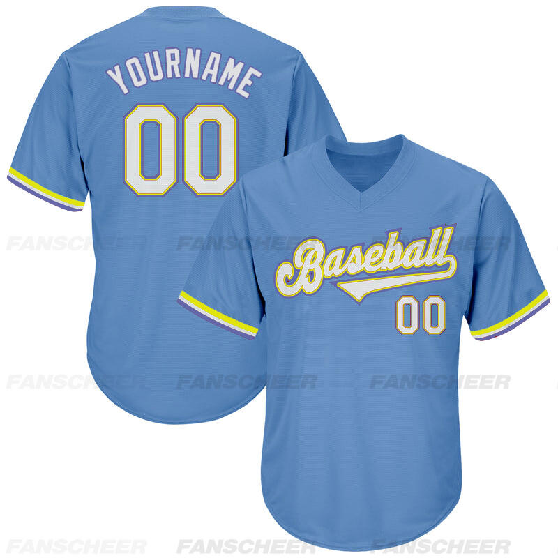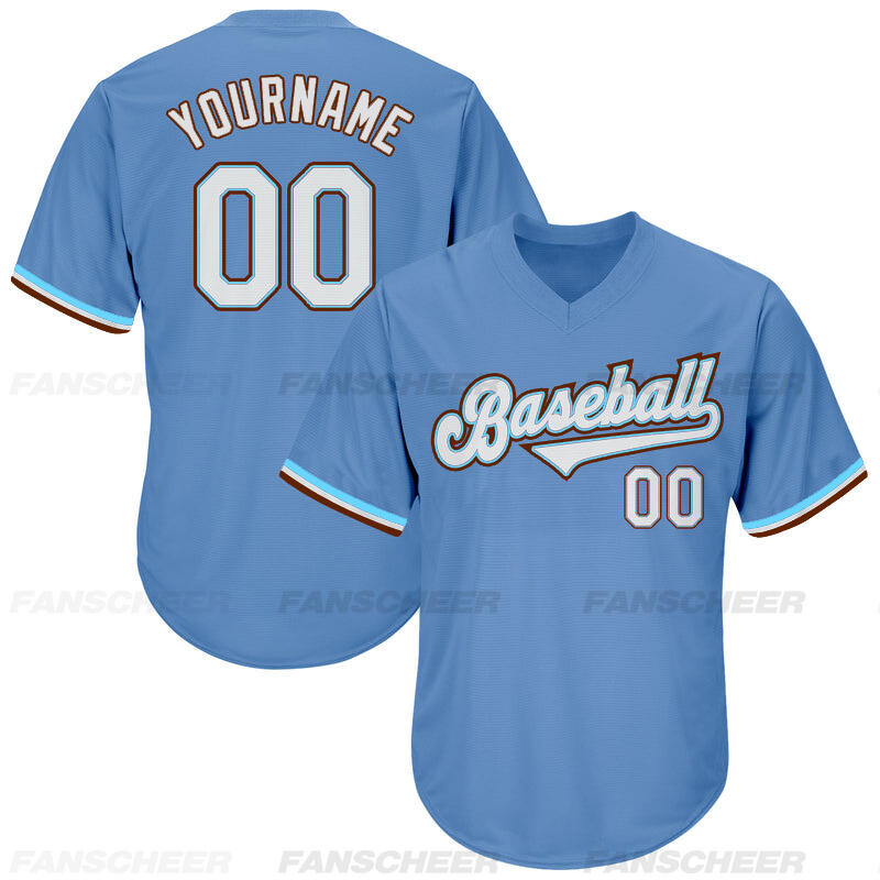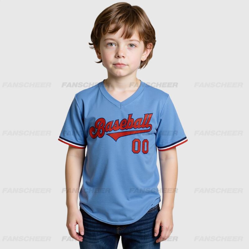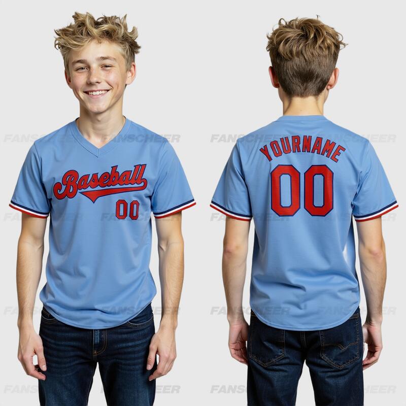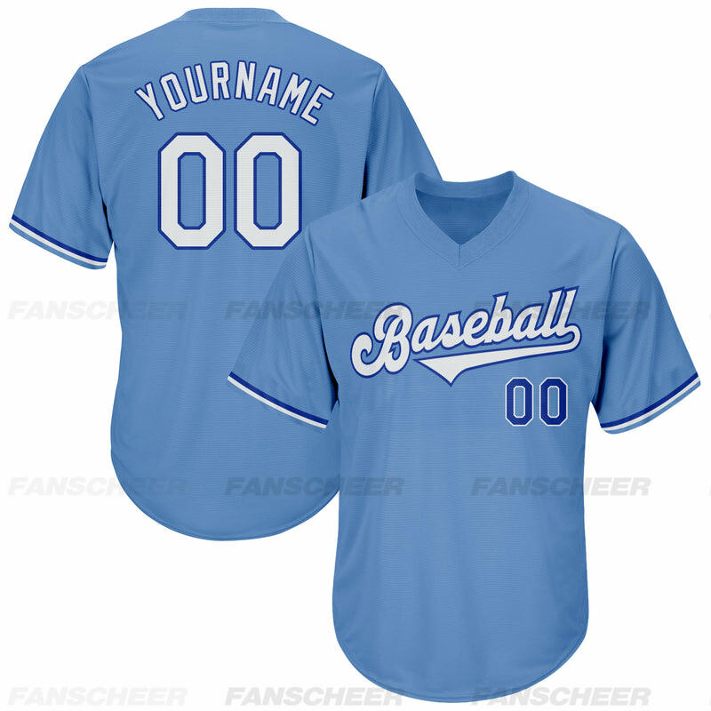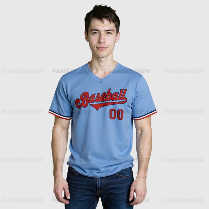 Personalized Number V-Neck Light Blue Baseball Jerseys Great for School Baseball Tournaments