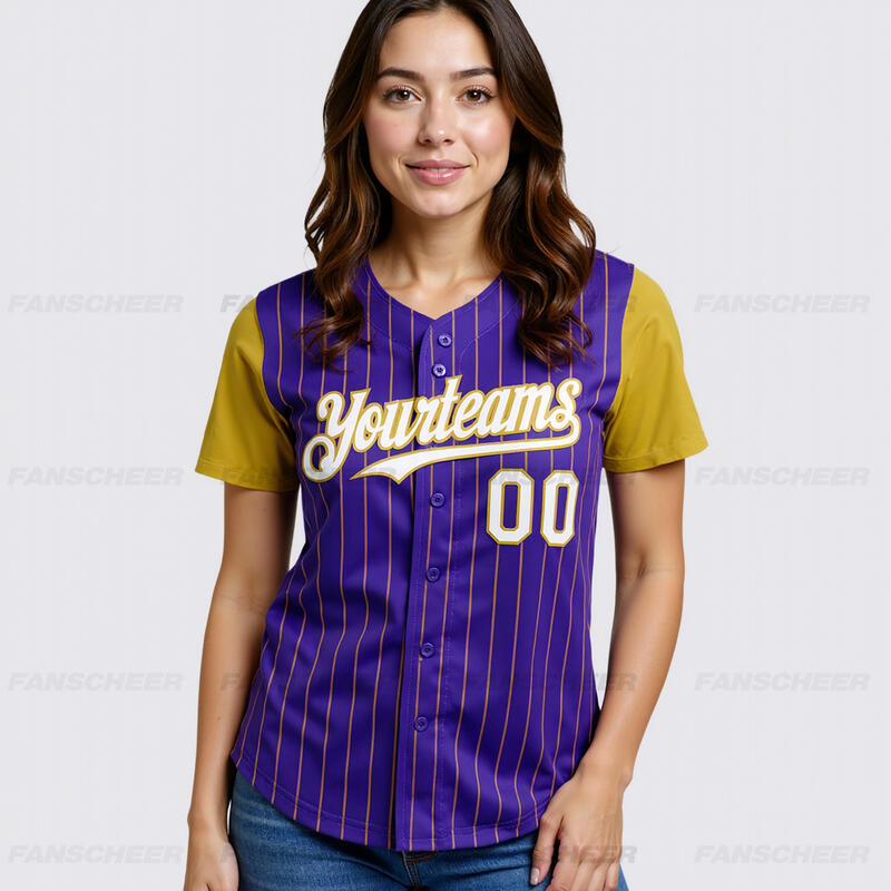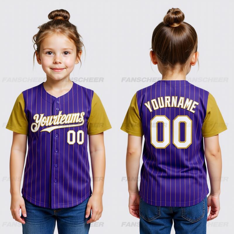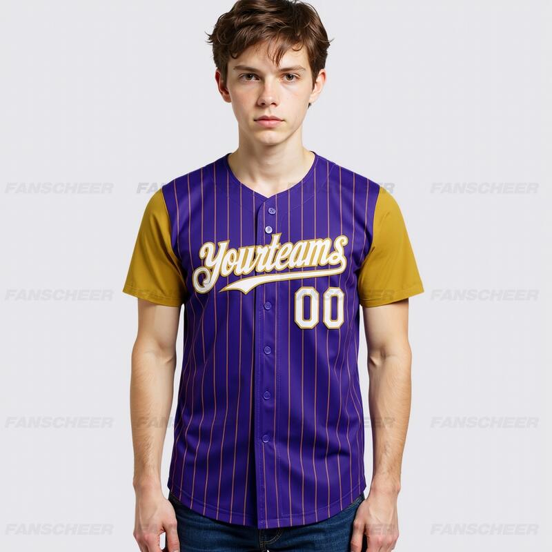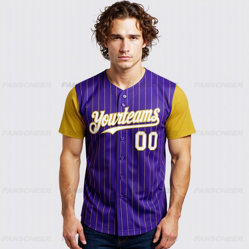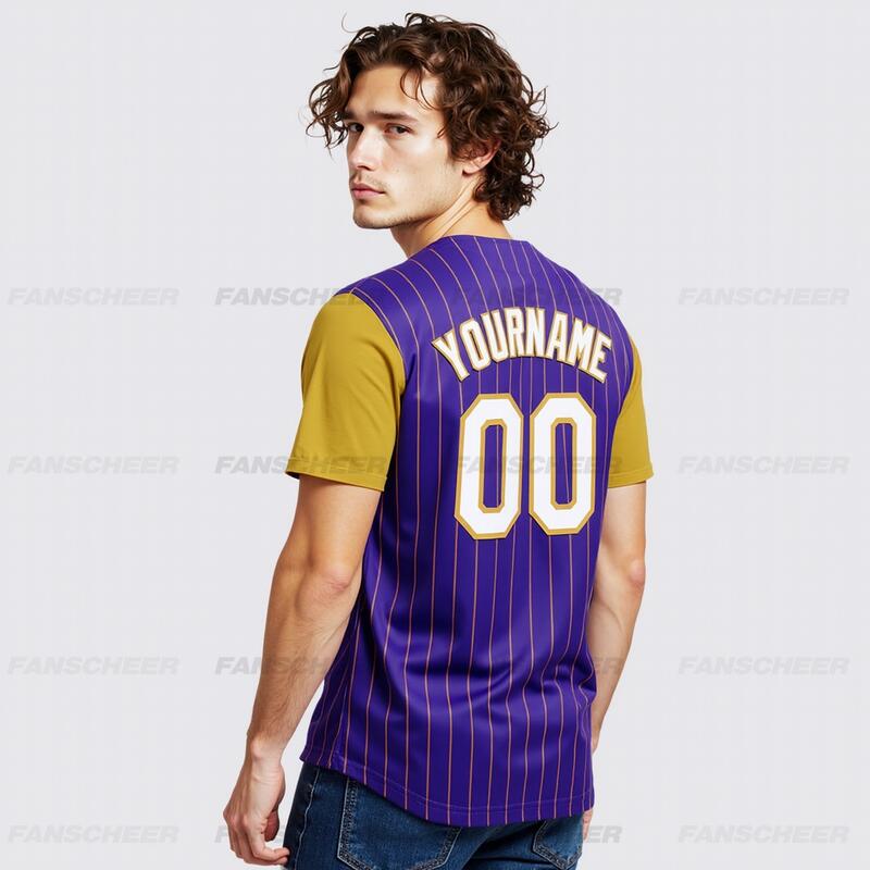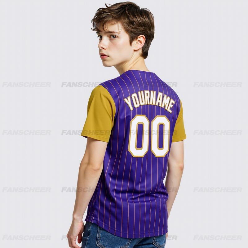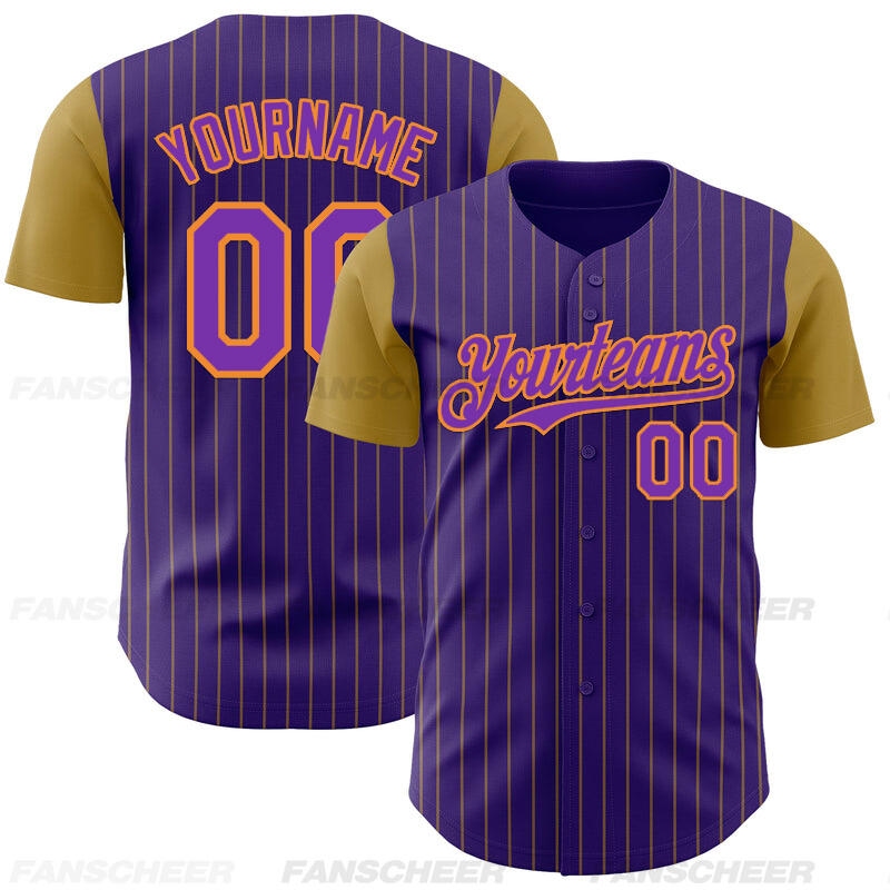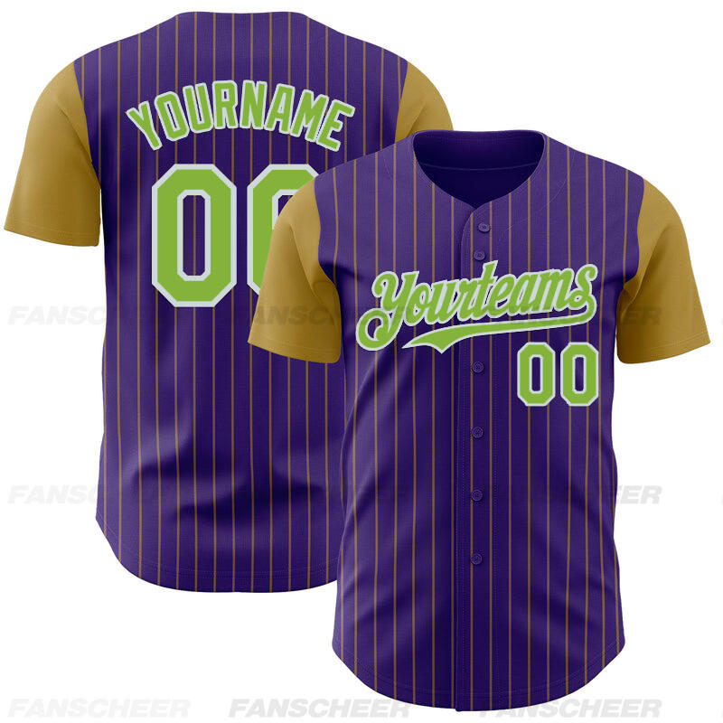 Personalized Purple Olive Pinstripe Two Tone Baseball Jersey Custom Number and Logo for Games Practices and Fan Use