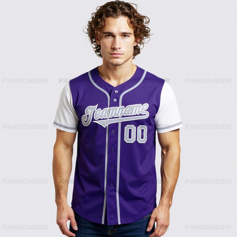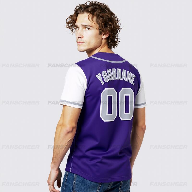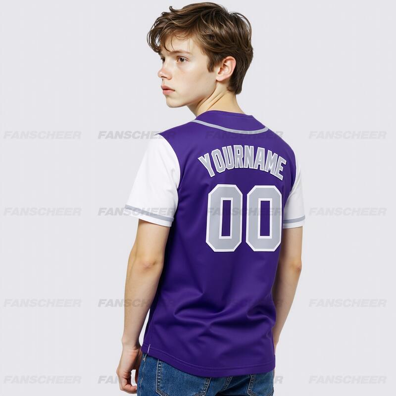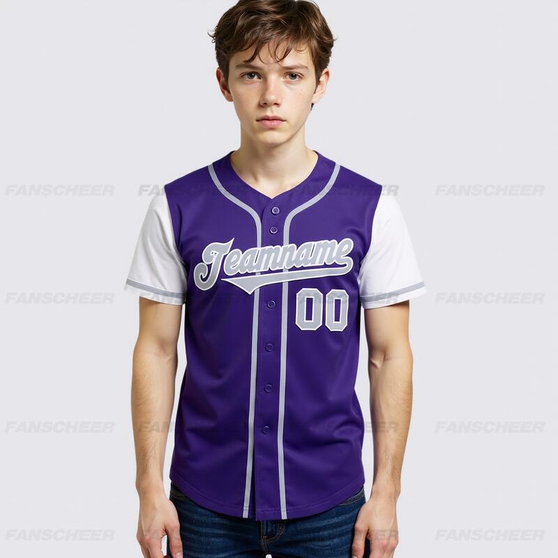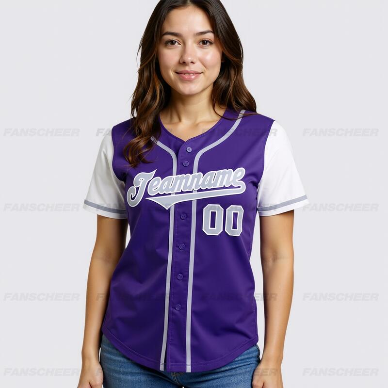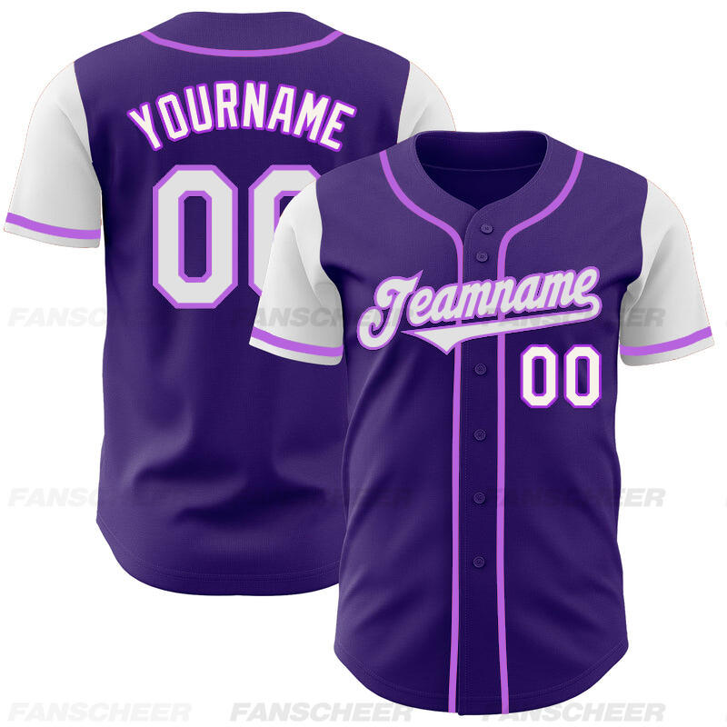 Personalized Purple White Two Tone Baseball Jersey Custom Number with Logo for Games Practices and Fan Use