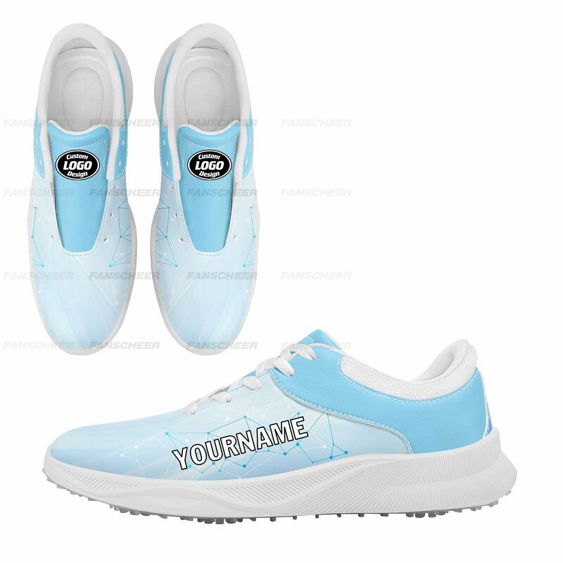 Personalized White and Light Blue Gradient Golf Shoes - Custom Name and Logo Footwear