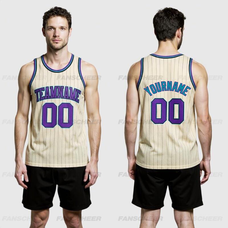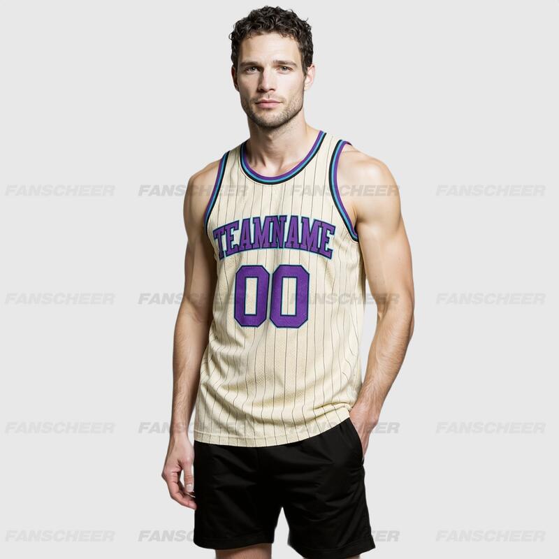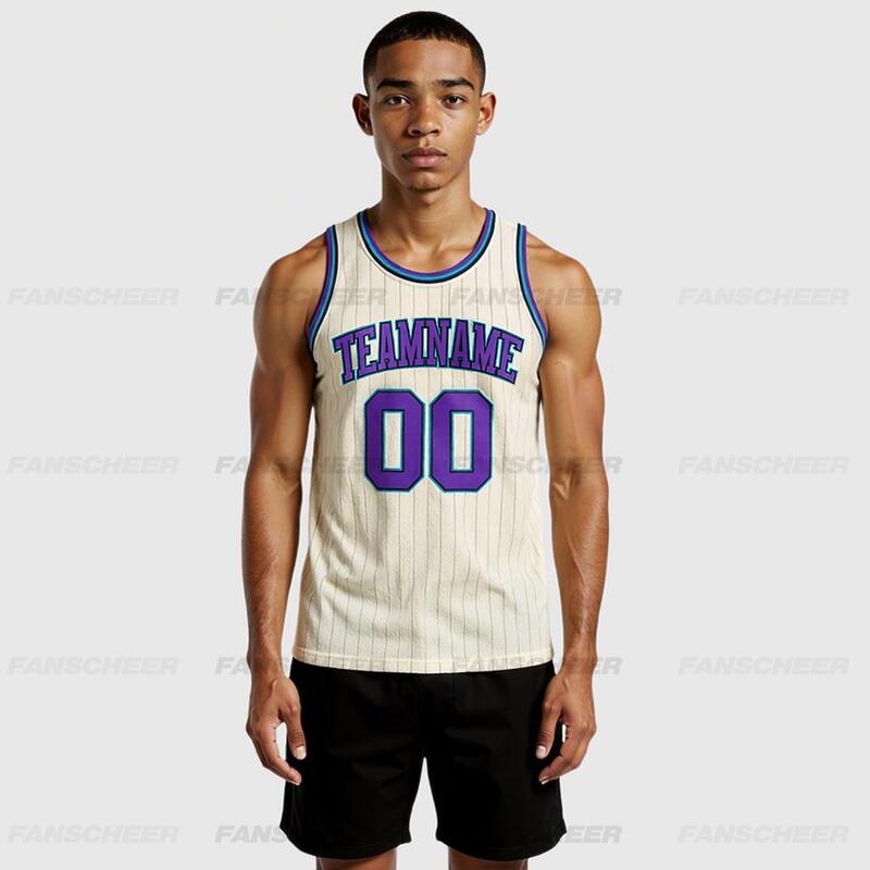 Pinstripe Authentic Cream Basketball Jersey - Custom Stripe Width, Premium Material, Comfort Fit
