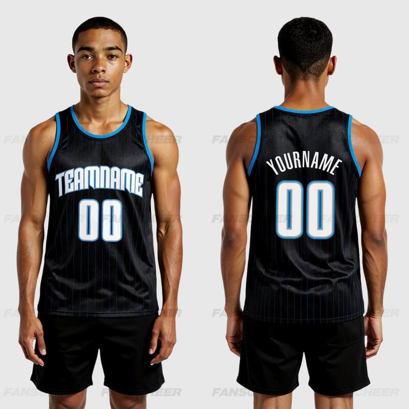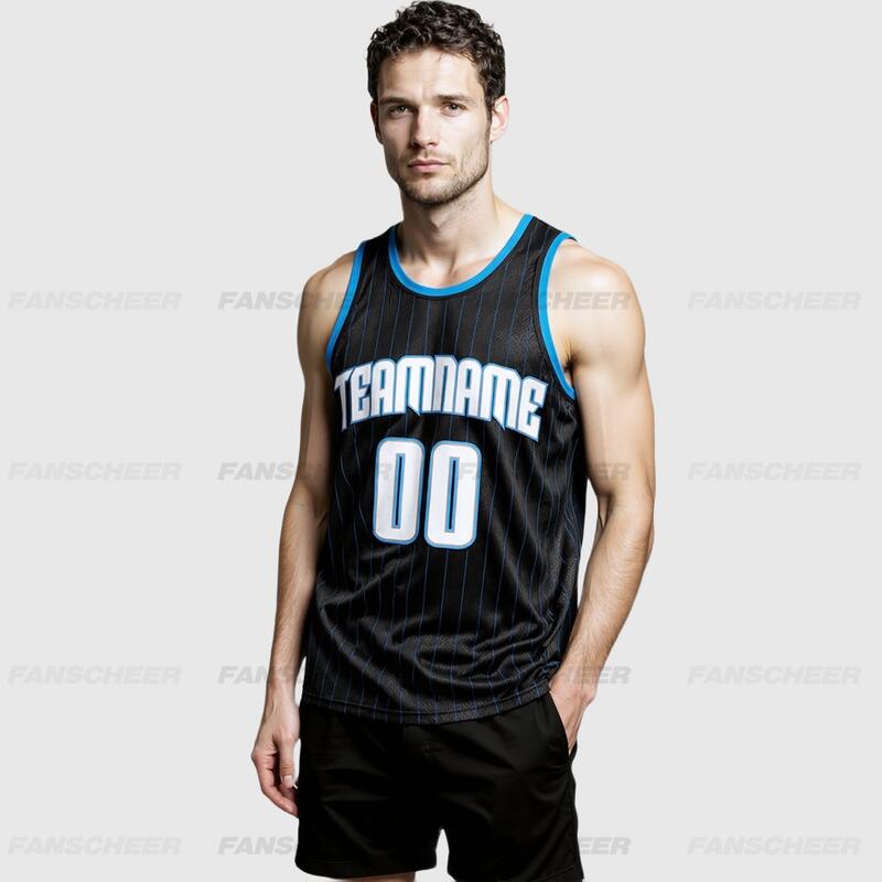 Pinstripe Black Basketball Jersey - Authentic Make, Custom Stripes, Comfortable Fit