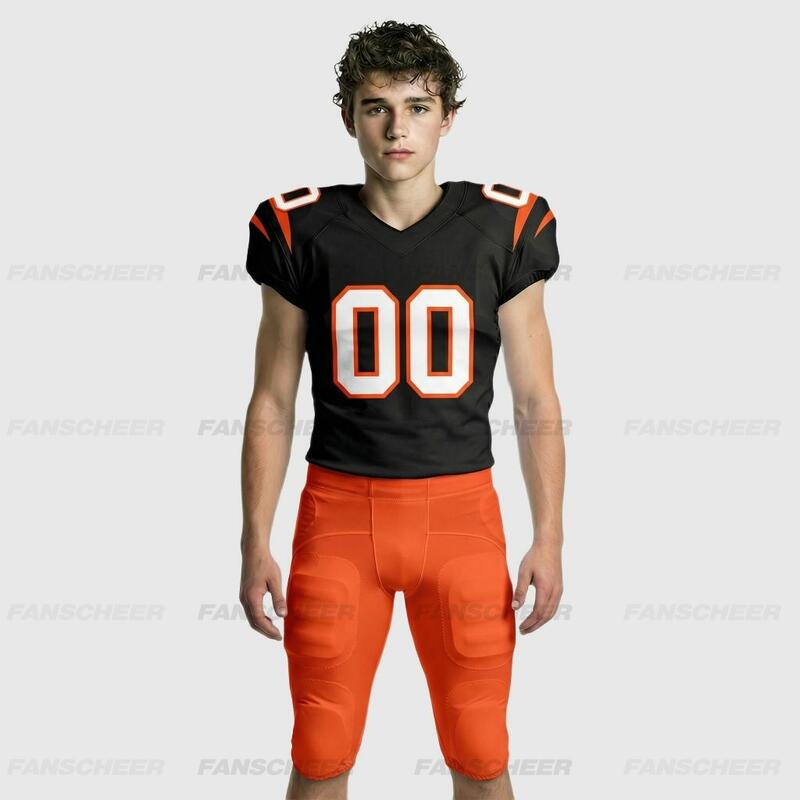 Professional-grade uniform sets (jersey + pants) engineered for gridiron performance: moisture-wicking polyester-spandex healthy fabric, reinforced seams, and fade-resistant finishes—built for practices and games with exceptional stretch and skin comfort.