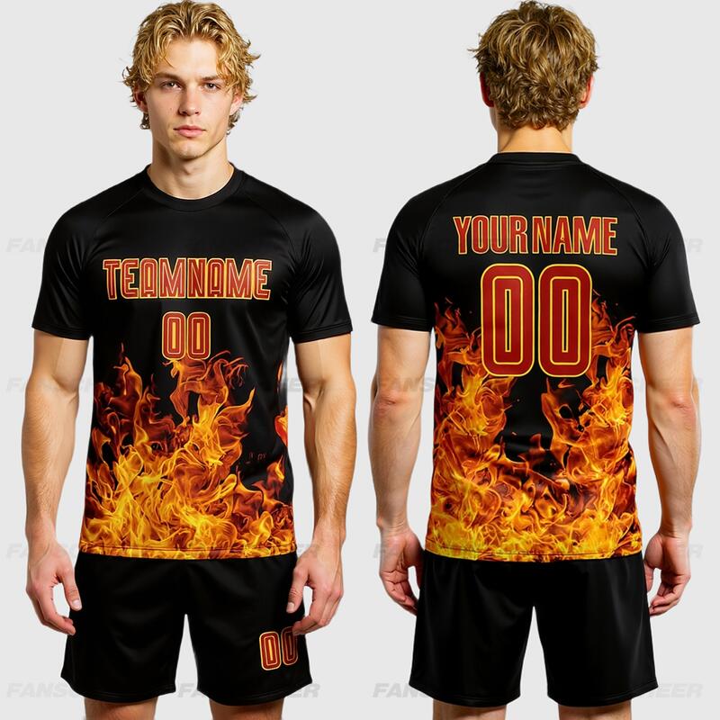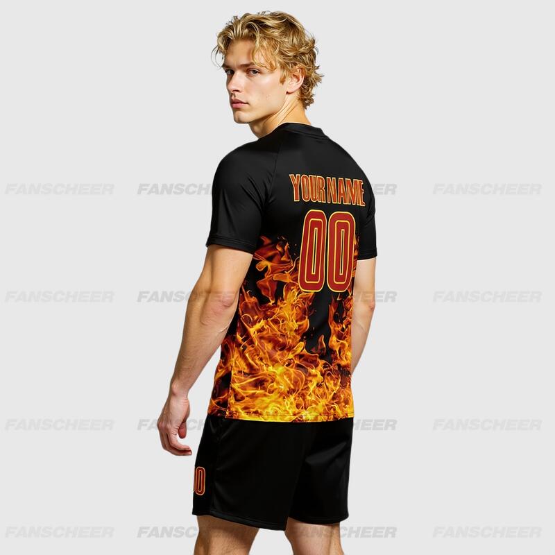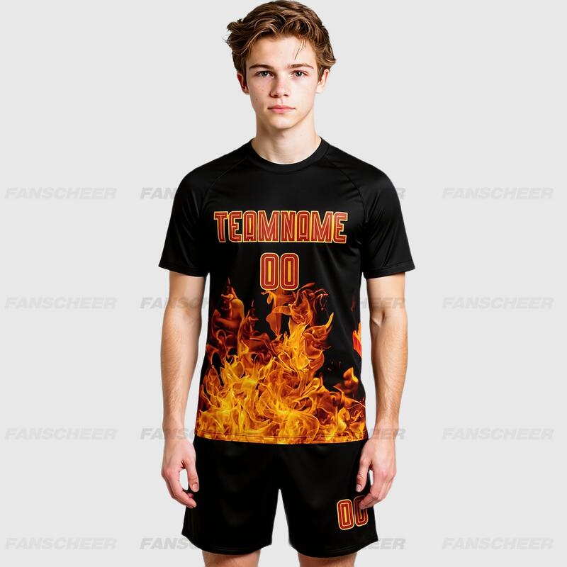 School Soccer Custom Flame Sublimation Uniform – Affordable, Breathable Textile with Comfortable Fit for Teams