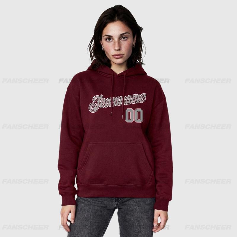 Soft Custom Stitched Burgundy Sports Pullover Hoodie Comfortable Fabric Custom Team Name & Unique Number